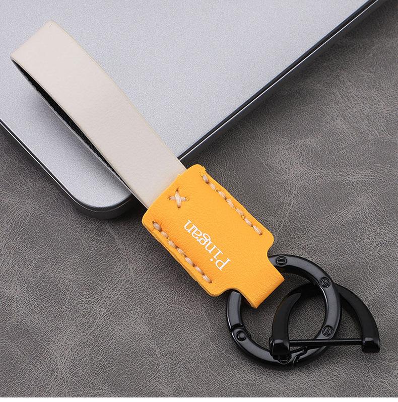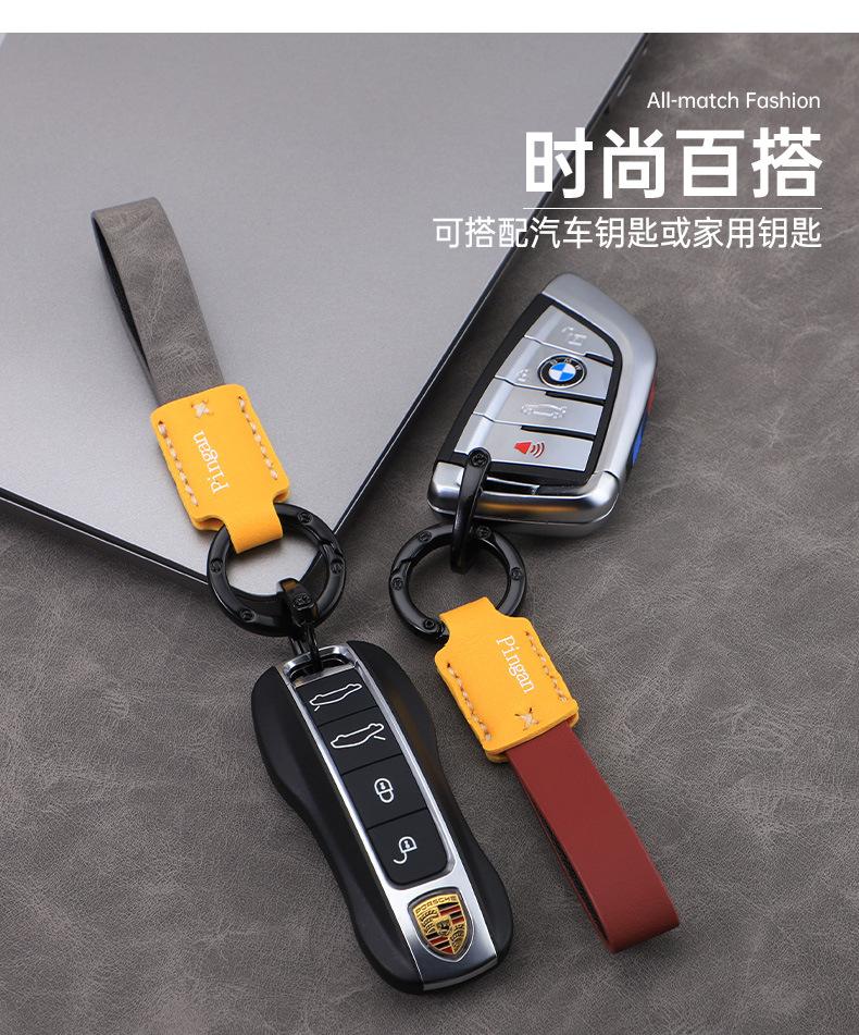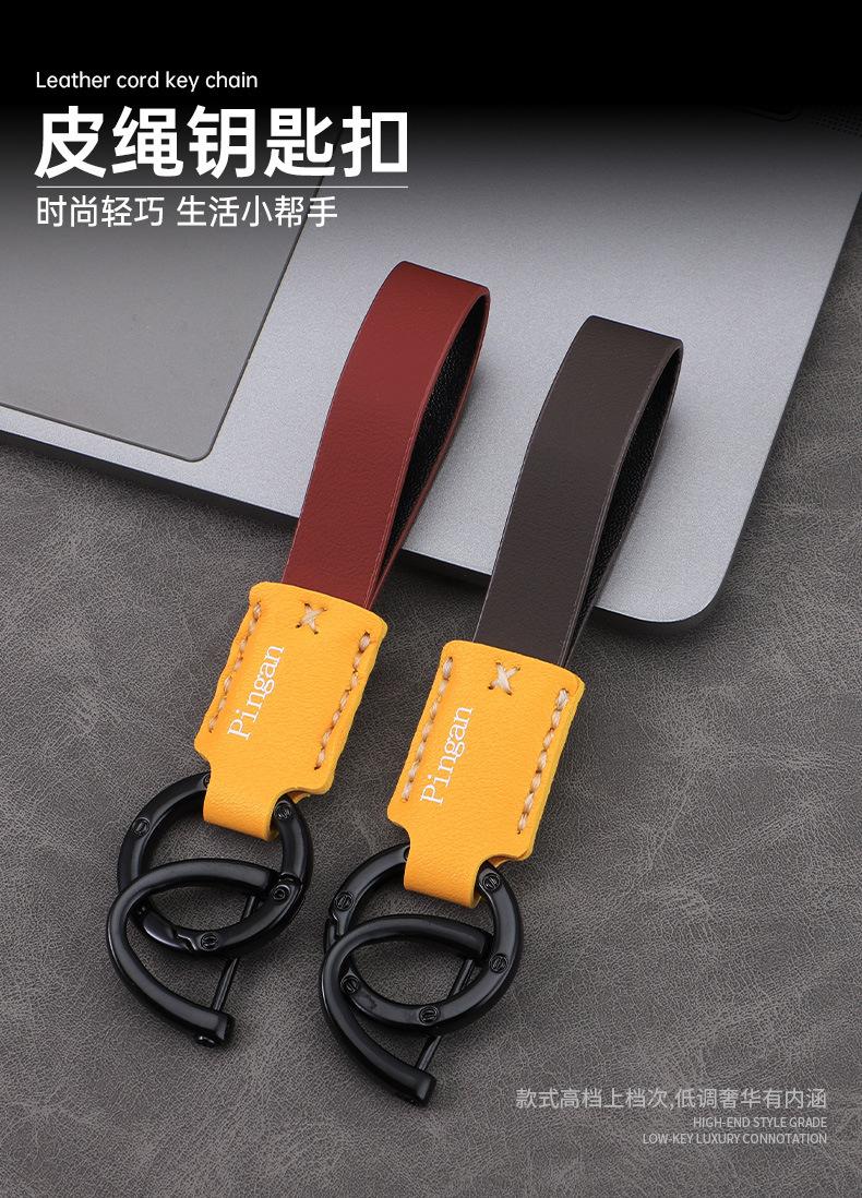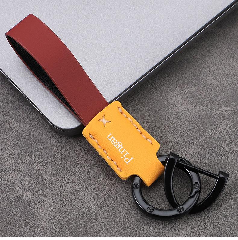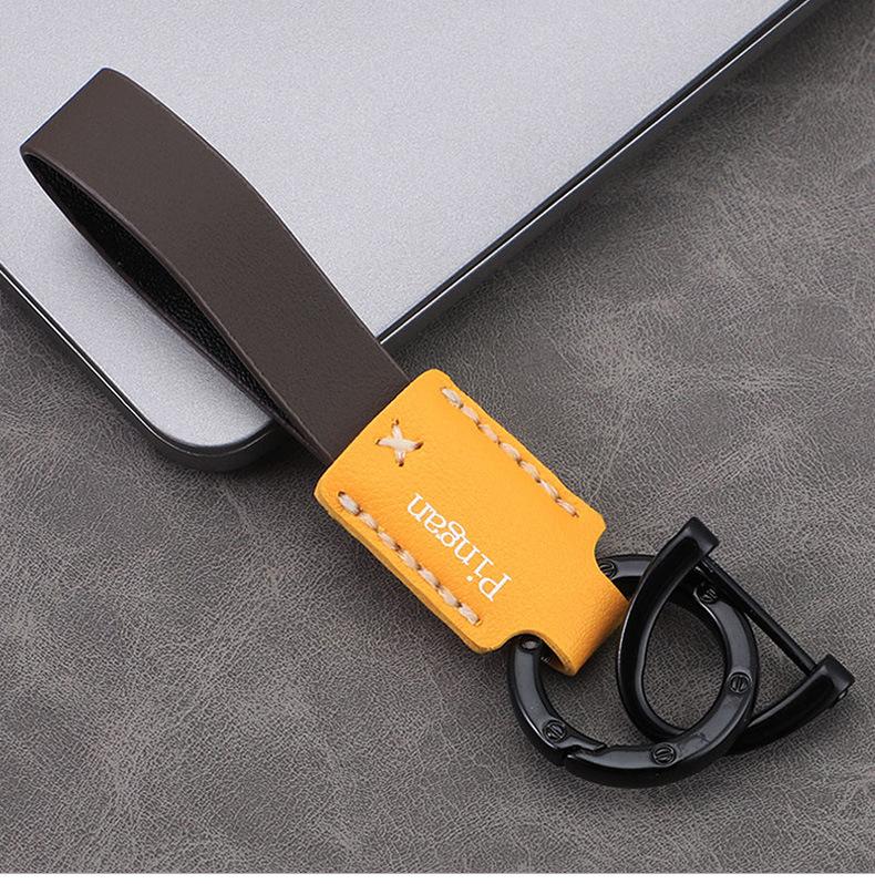 Chaveiro de carro com fivela D, chaveiro de couro genuíno, corda de mão, pingente de chave de negócios simples personalizado, pingente multicolorido