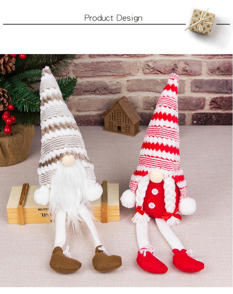 Decorações de Natal com Fronteiras Cruzadas Rudolph Chapéu Listrado Pernas Longas Boneca Velho Sem Rosto Boneca Gnome Boneca Enfeites