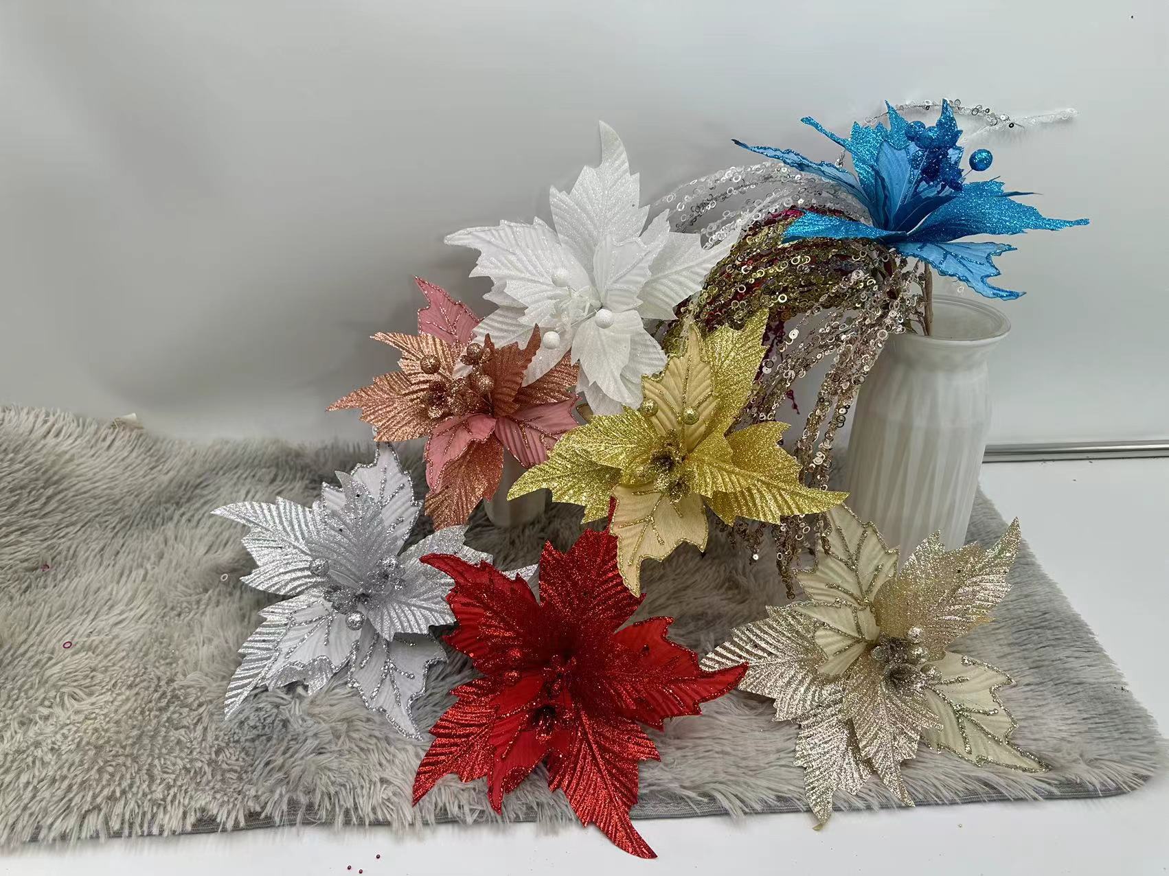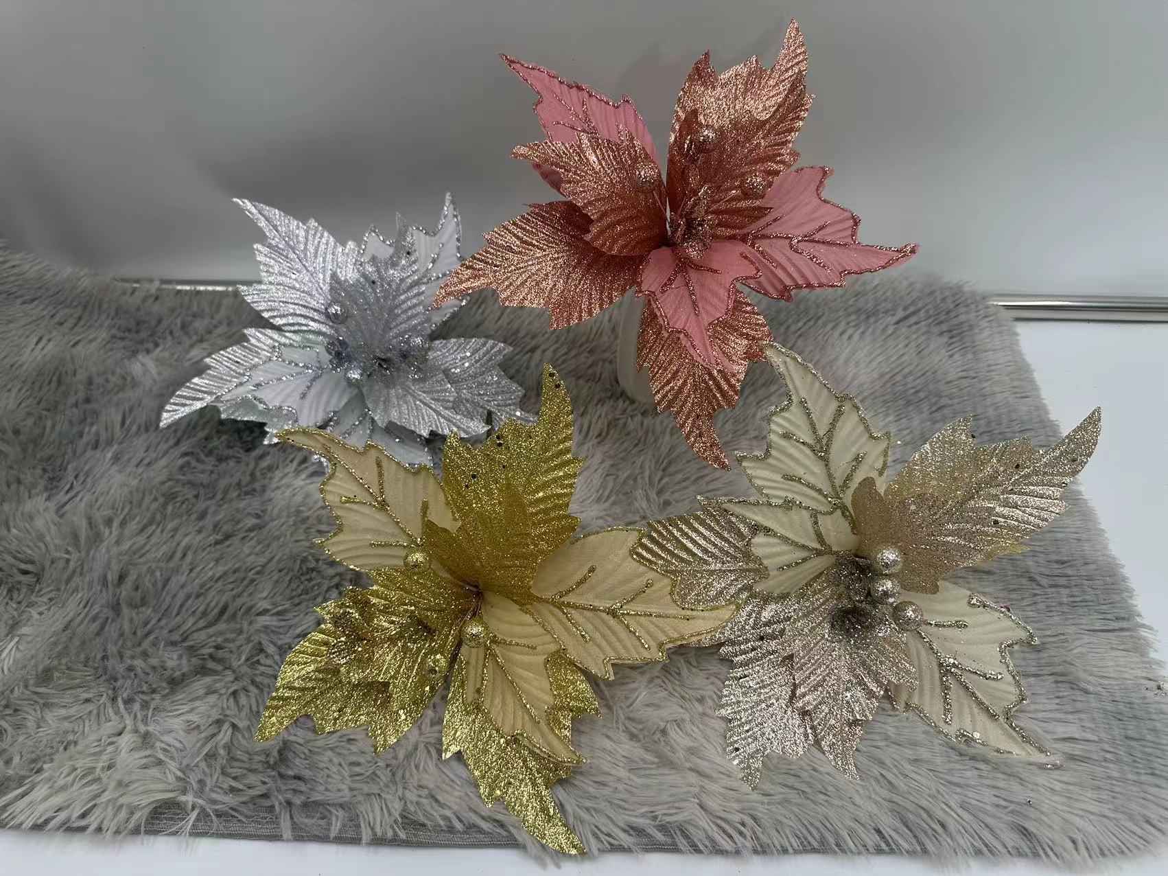 Compre Flor de Natal Vermelha Dourada Enfeites de Natal Decoração de Natal Acessórios de Guirlanda de Natal Flor de Natal DIY Feita à Mão no atacado no Joom.pro