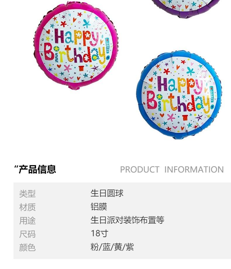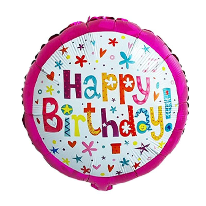 Balão de alumínio redondo de 18 polegadas, feliz aniversário, colorido, impresso, decoração, adereços, festa de aniversário infantil
