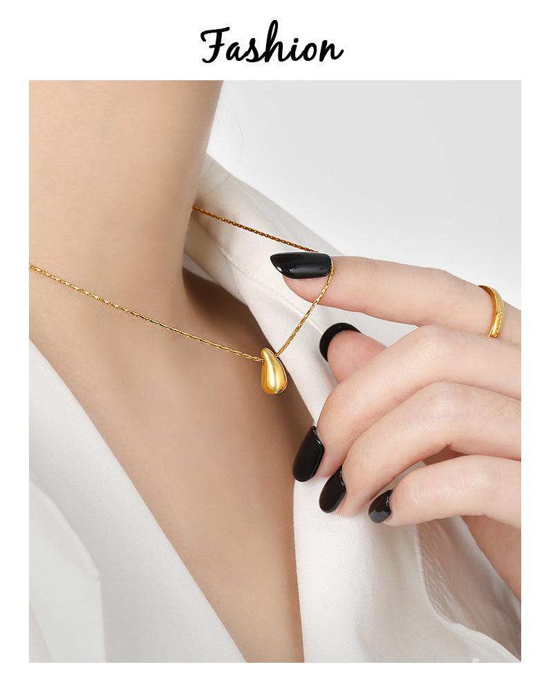 Novo Colar Coreano Ins Nicho Gota de Água da Moda para Mulheres Simples Elegante Banhado a Ouro Aço Titânio Corrente para Clavícula