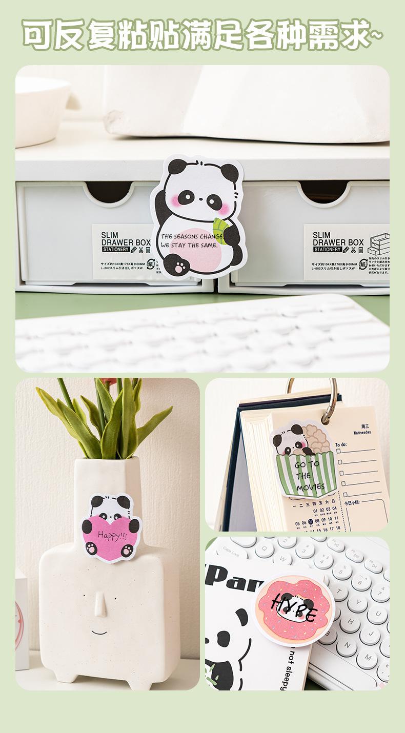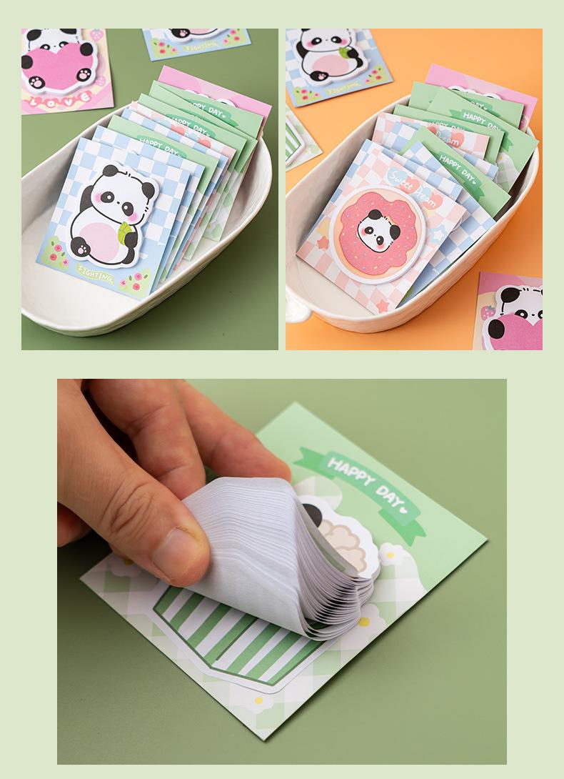Ins Notas adesivas de panda fofas de alta aparência Papel de nota em formato especial Papel de carta adesivo rasgável de alta aparência Mensagem N Times Adesivo