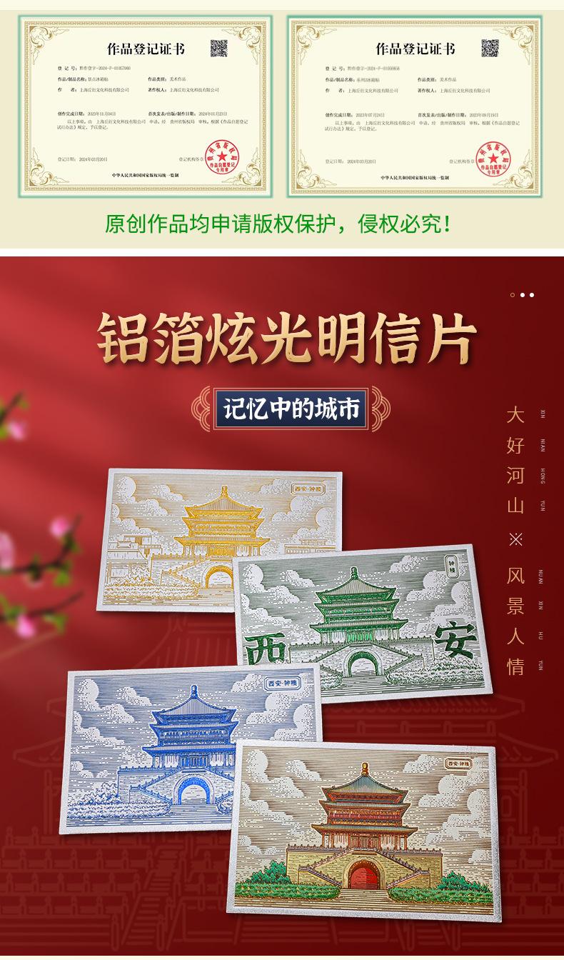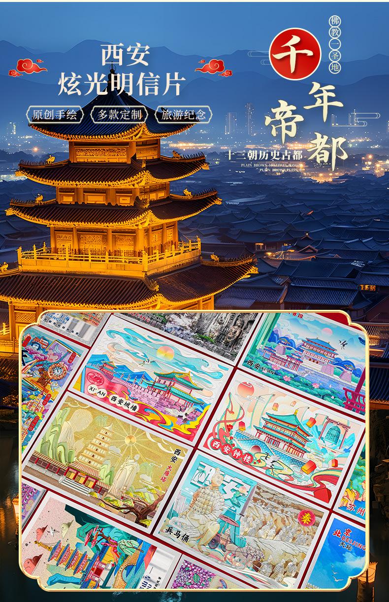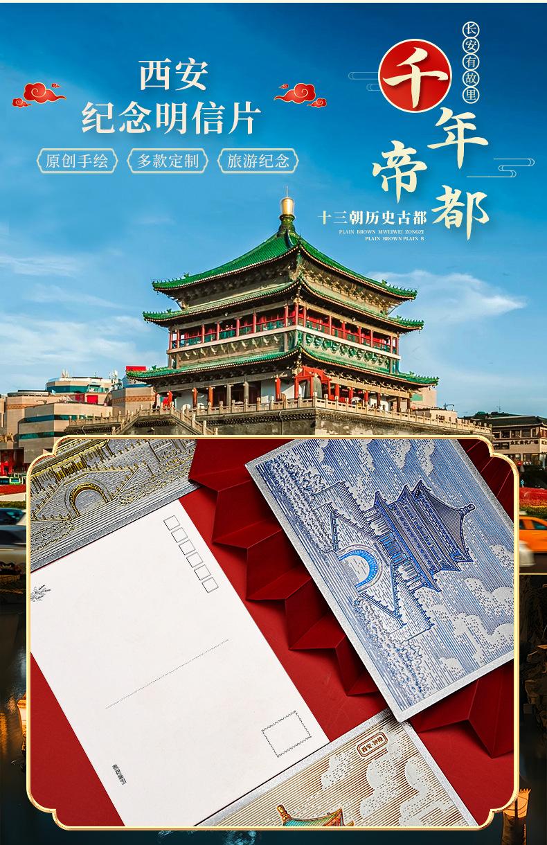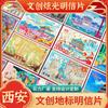 Xi 'an deslumbrar luz cartão postal original pintado à mão criativo Xi'an torre do sino cartão postal livraria correios selo lembrança