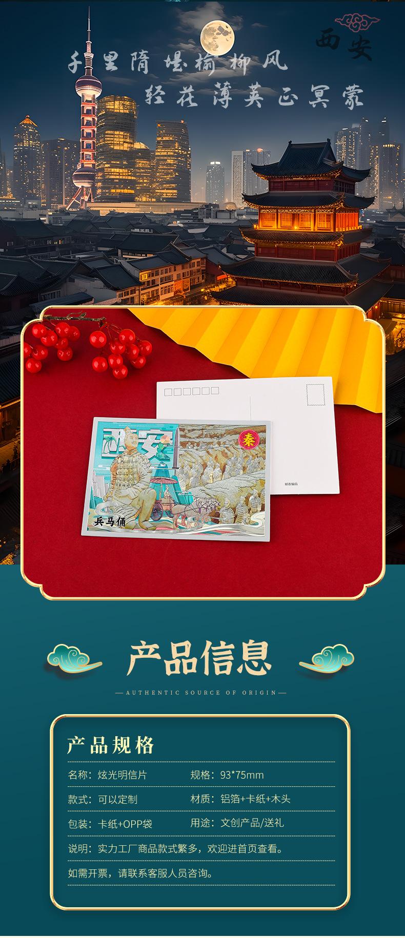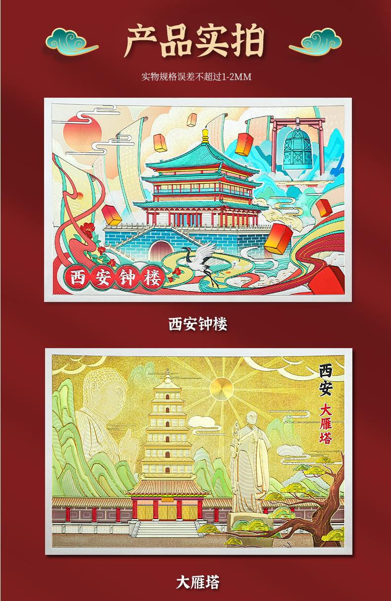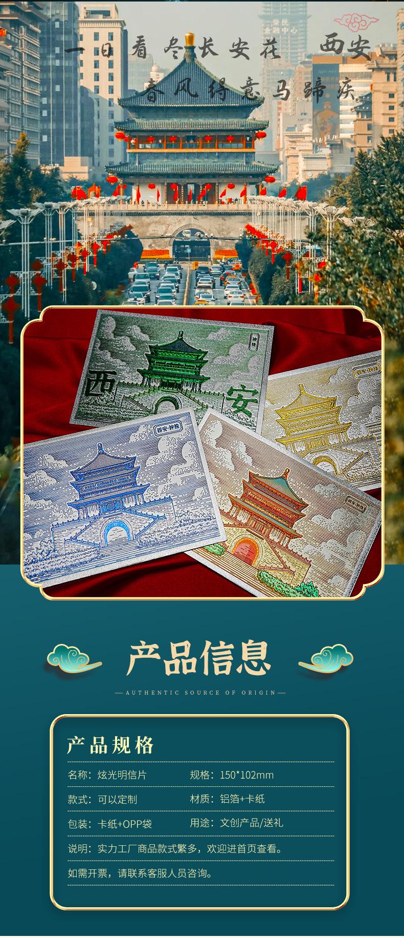 Xi 'an deslumbrar luz cartão postal original pintado à mão criativo Xi'an torre do sino cartão postal livraria correios selo lembrança