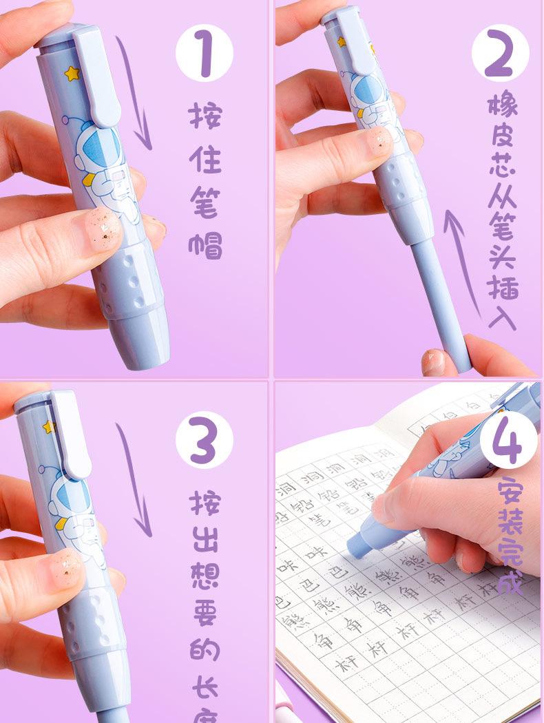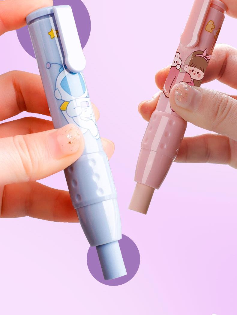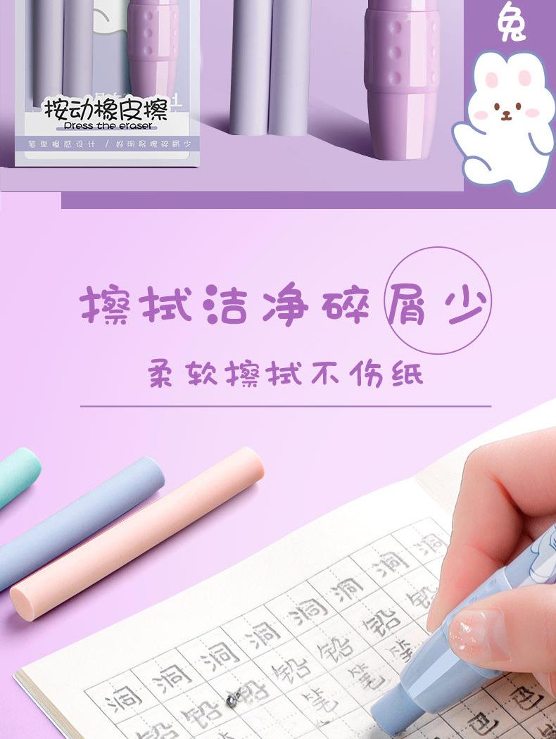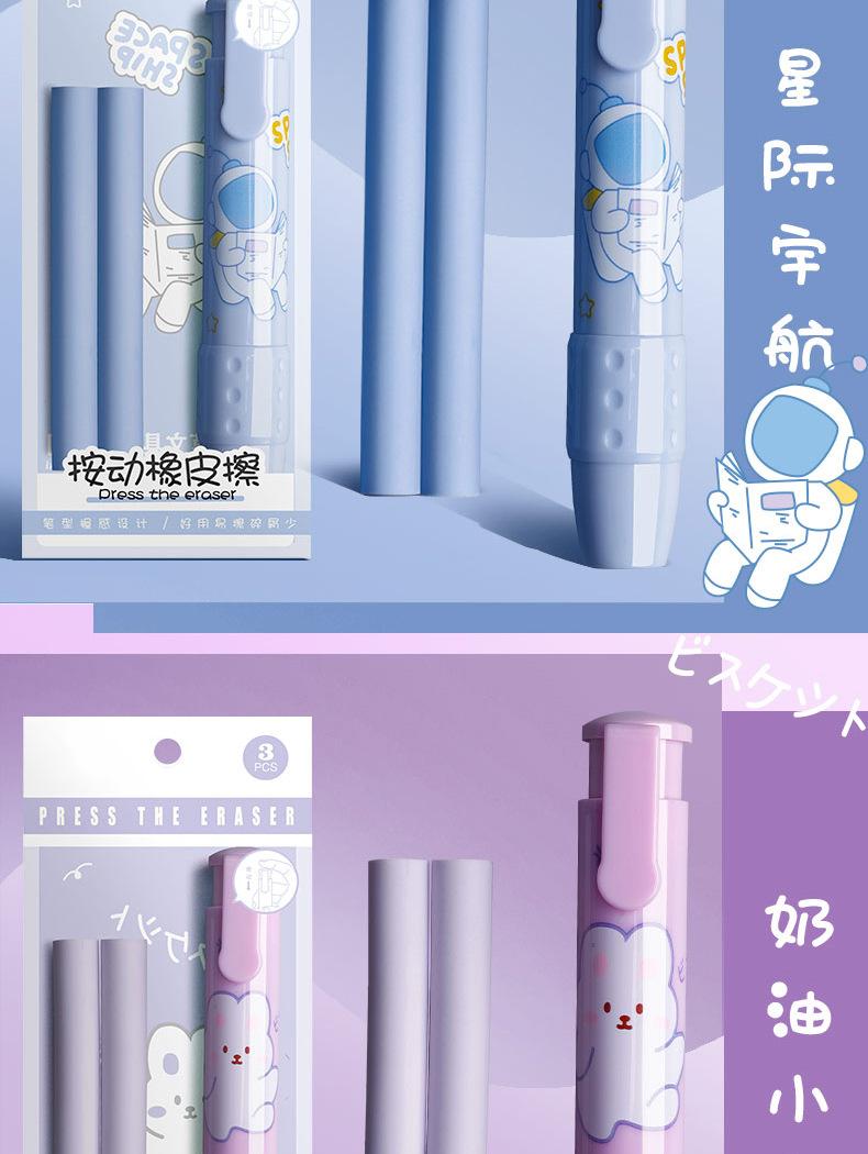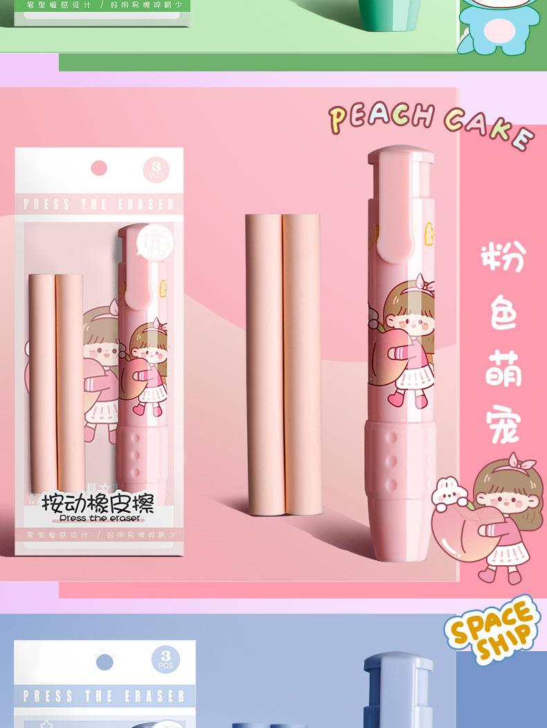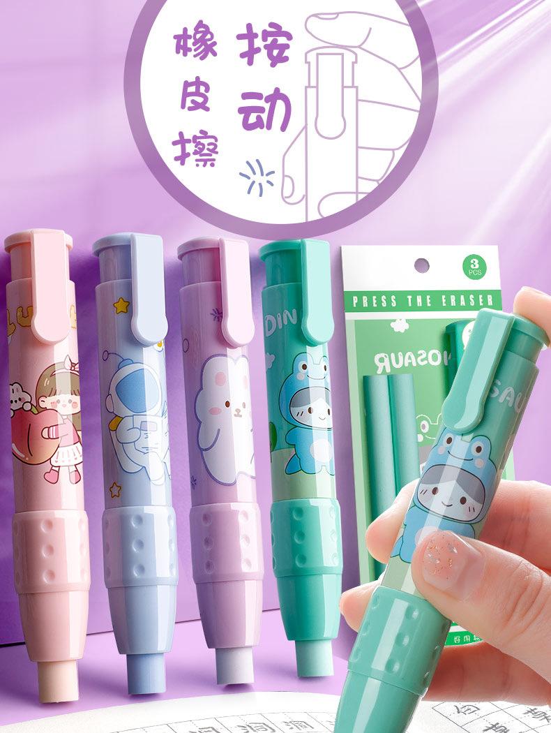 Pressione a borracha para alunos jardim de infância crianças da escola primária desenho animado criativo bonito limpo sem deixar marcas retráteis
