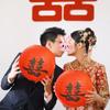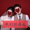 2 red background happy characters 30cm-excluding others, Happy and happy 10cm, We are getting married - stretc...