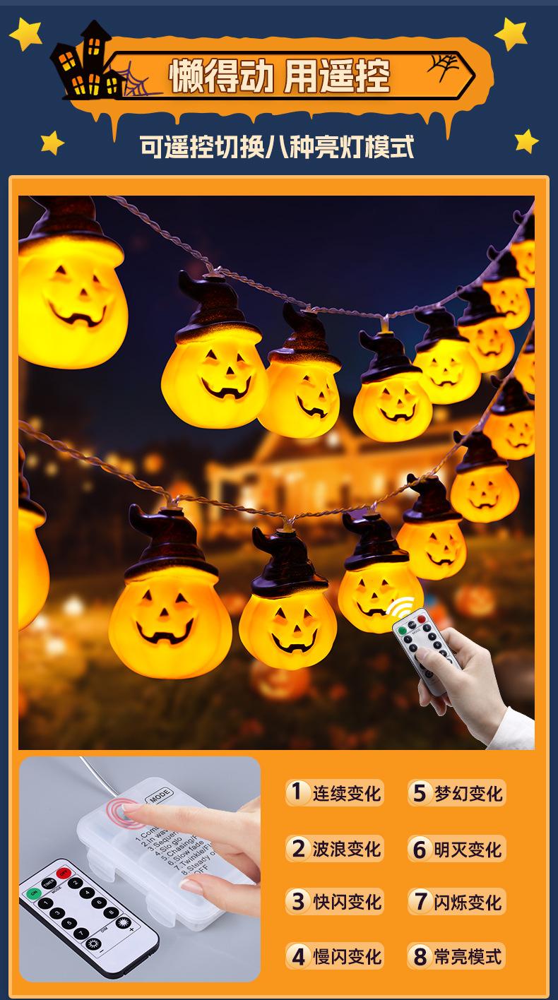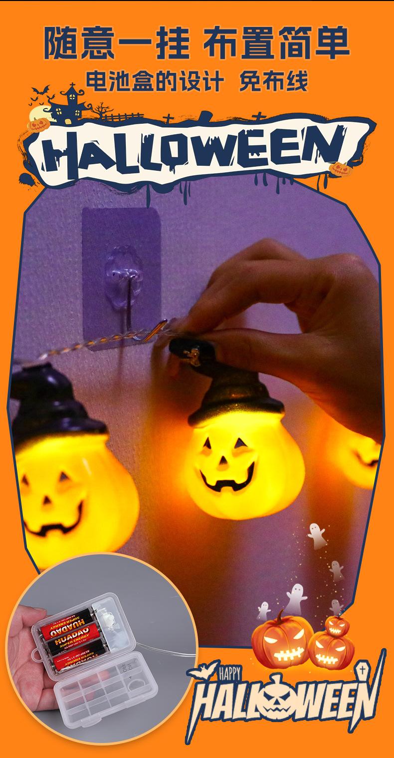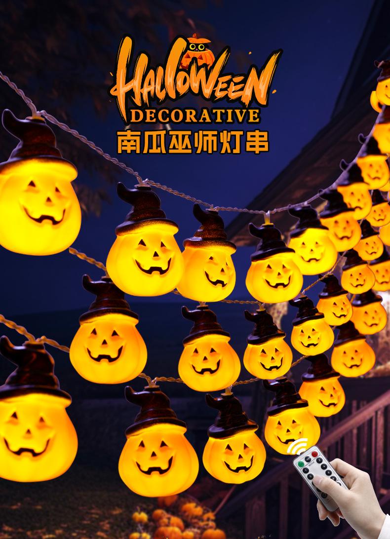 Compre Chapéu de Mago Brilhante Abóbora Cordão de Luzes LED Atmosfera de Halloween Adereços de Decoração de Halloween Suprimentos Transfronteiriços no atacado no Joom.pro