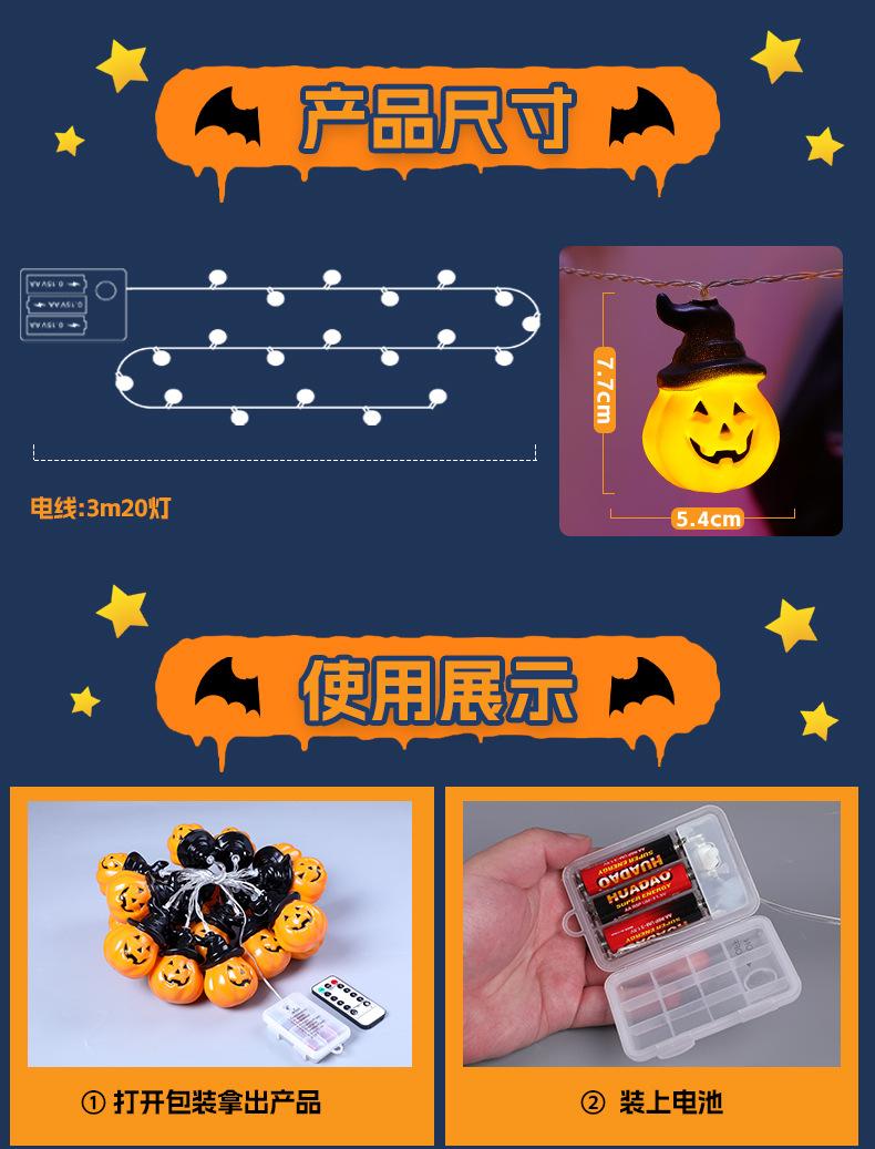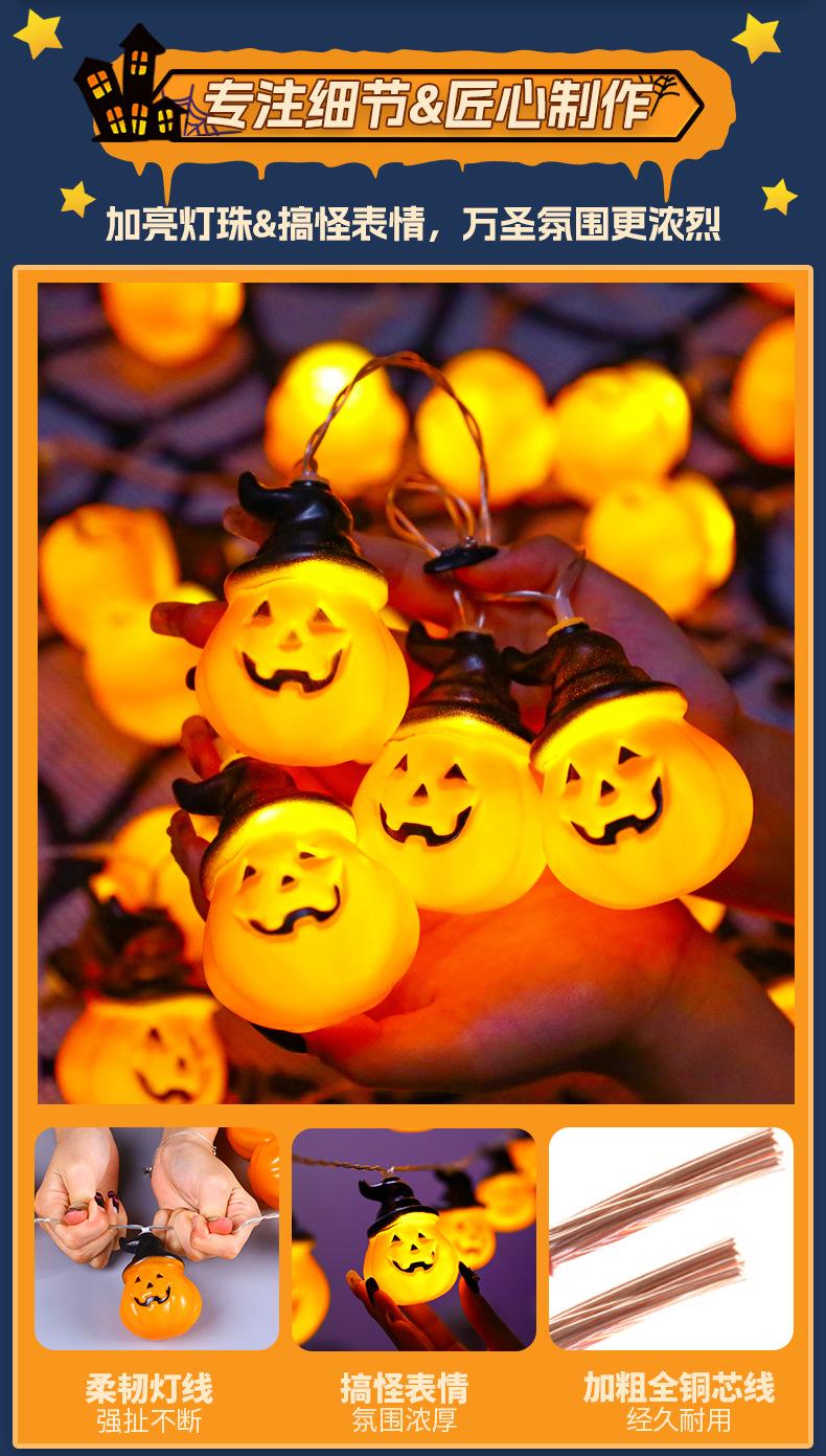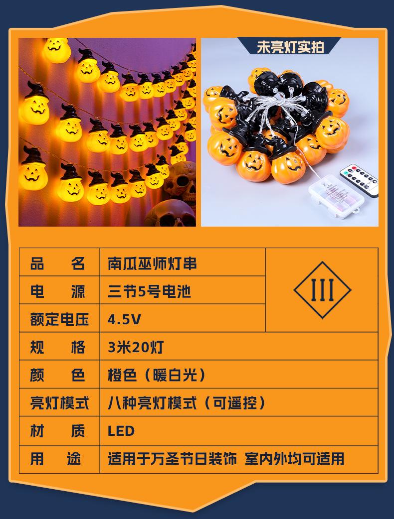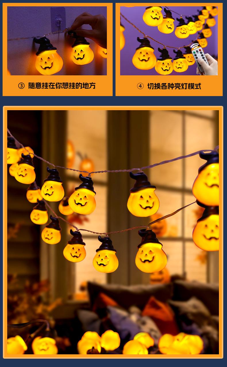 Compre Chapéu de Mago Brilhante Abóbora Cordão de Luzes LED Atmosfera de Halloween Adereços de Decoração de Halloween Suprimentos Transfronteiriços no atacado no Joom.pro
