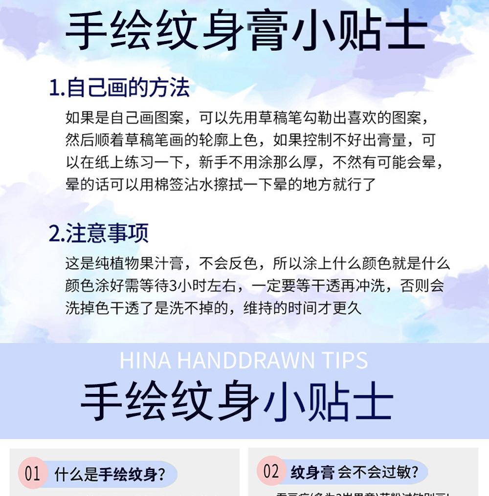 Tatuagem Pintada à Mão Estudante Creme Cor Temporária Tatuagem de Suco À Prova D'Água Duradoura Henna Creme Corretivo Temporário Tatuagem