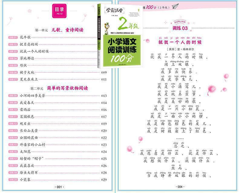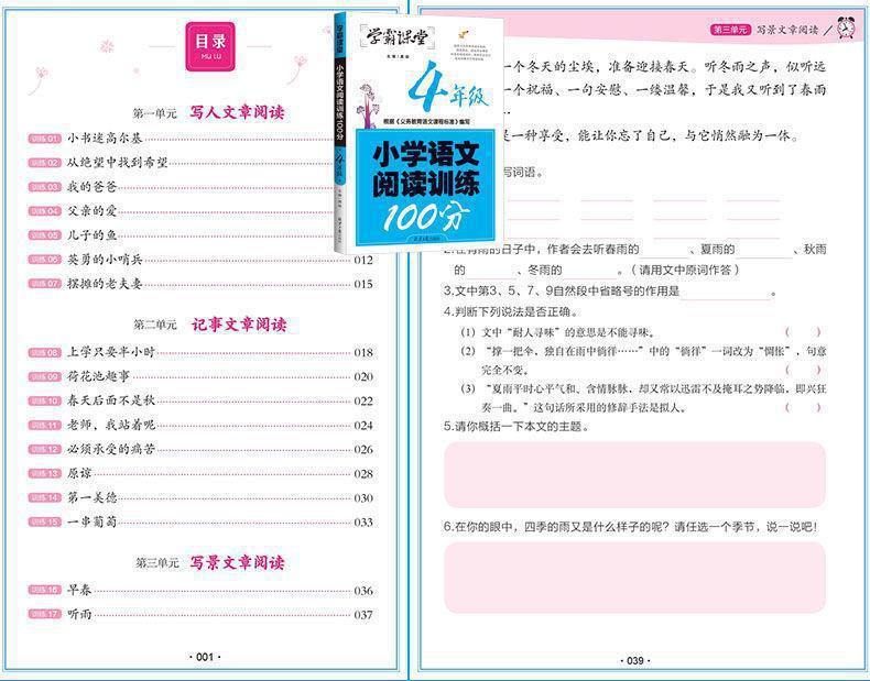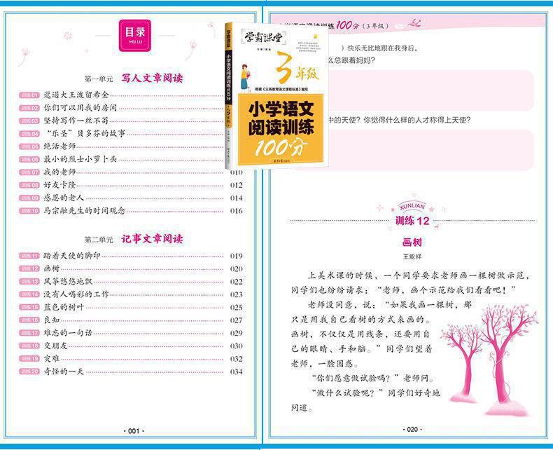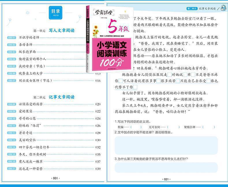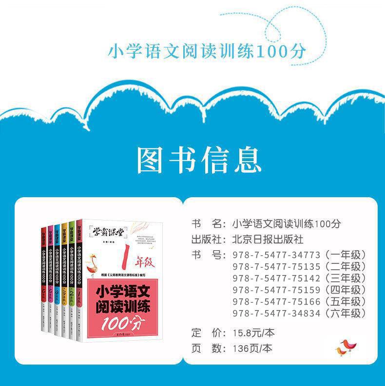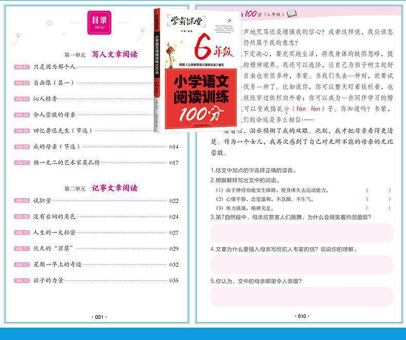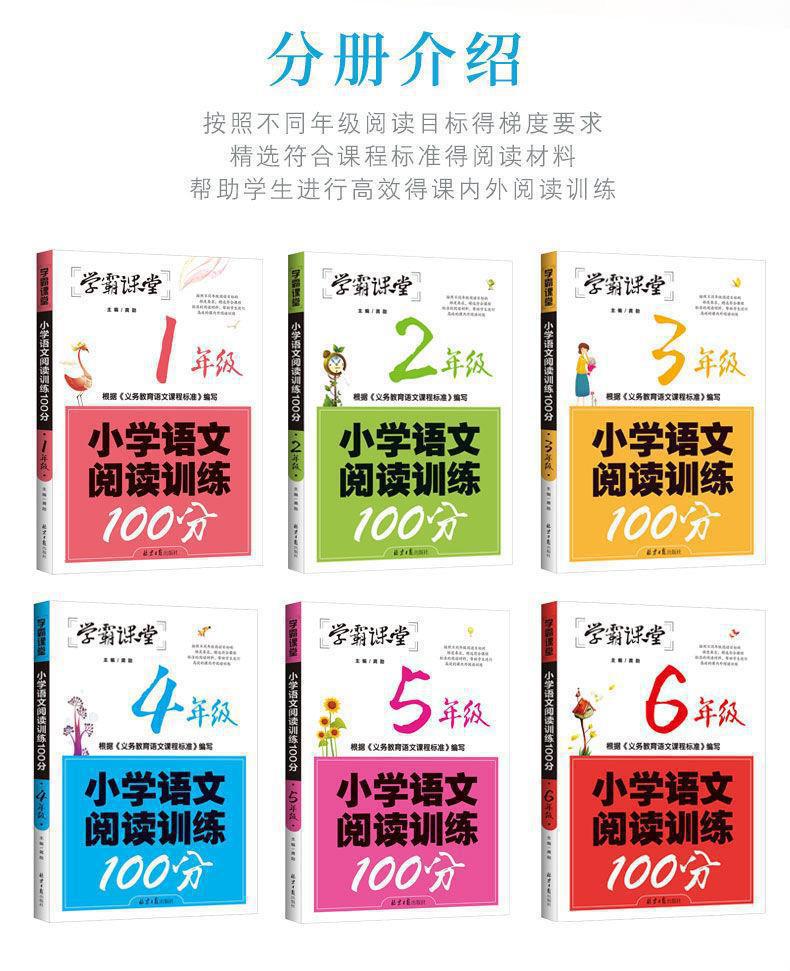 Xueba sala de aula escola primária treinamento de leitura chinesa 100 pontos 1~6 série conjunto completo de treinamento de compreensão de leitura sala de aula sprint