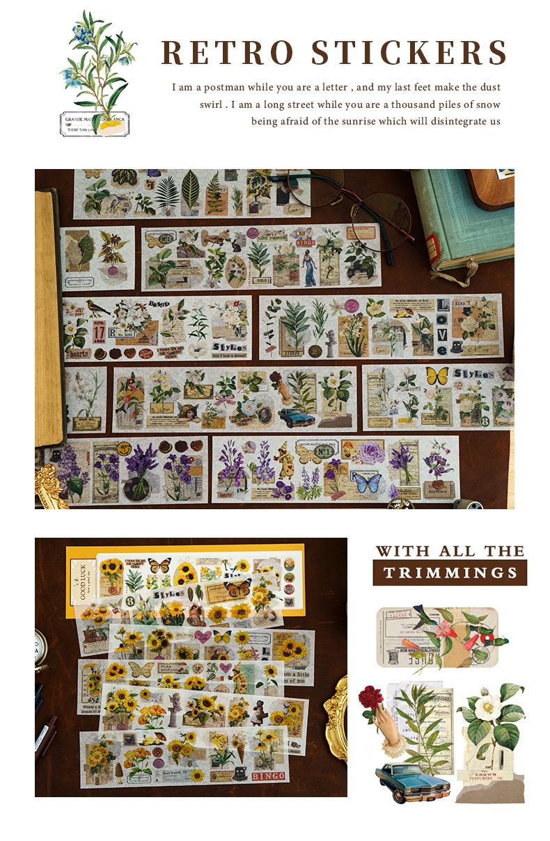 Lace natureza série série diy mão conta adesivo saco e papel planta flor material retrô papel mão conta adesivo