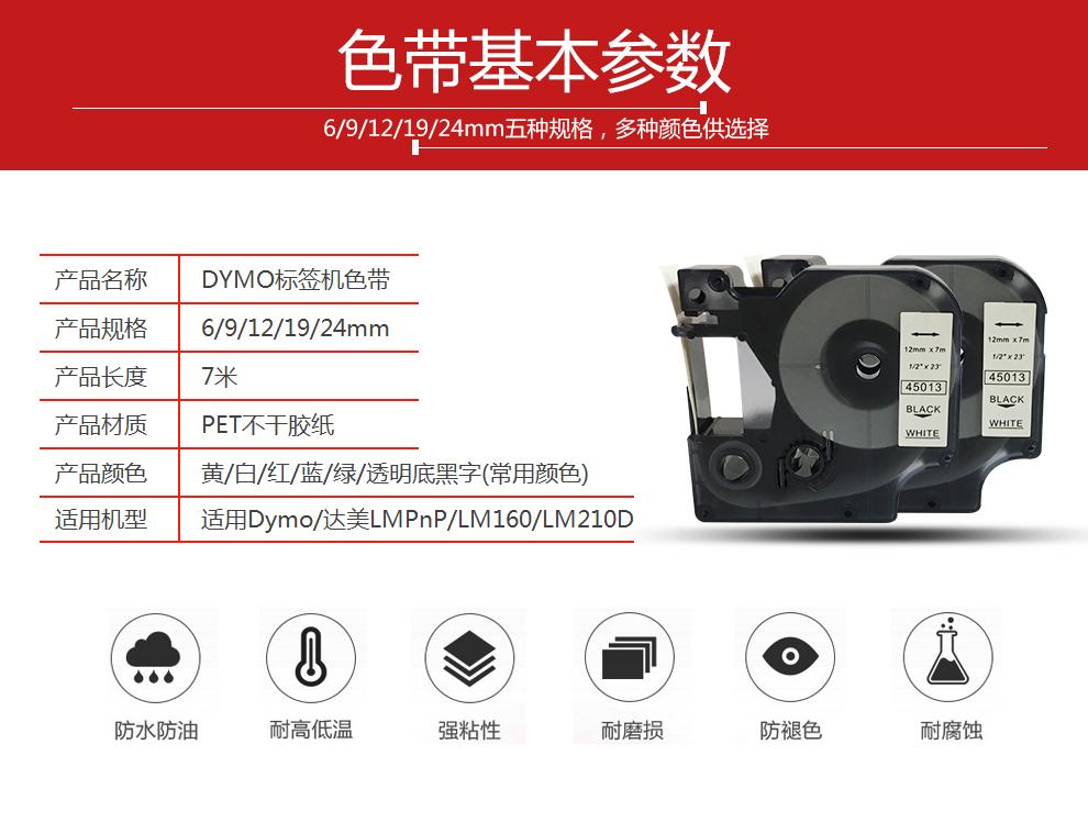 Fita para máquina de etiquetas geral 6mm fundo branco letra preta D1 fita de laminação autoadesiva para etiquetas domésticas DYMO Delta