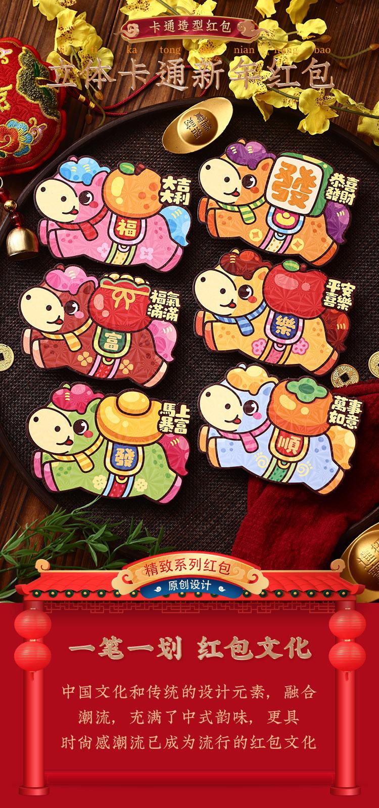 Envelopes Vermelhos de Desenho Animado Tridimensionais Criativos Personalizados Atacado 2026 Ano do Cavalo Envelopes Mini de Dinheiro da Sorte para o Novo Festival da Primavera