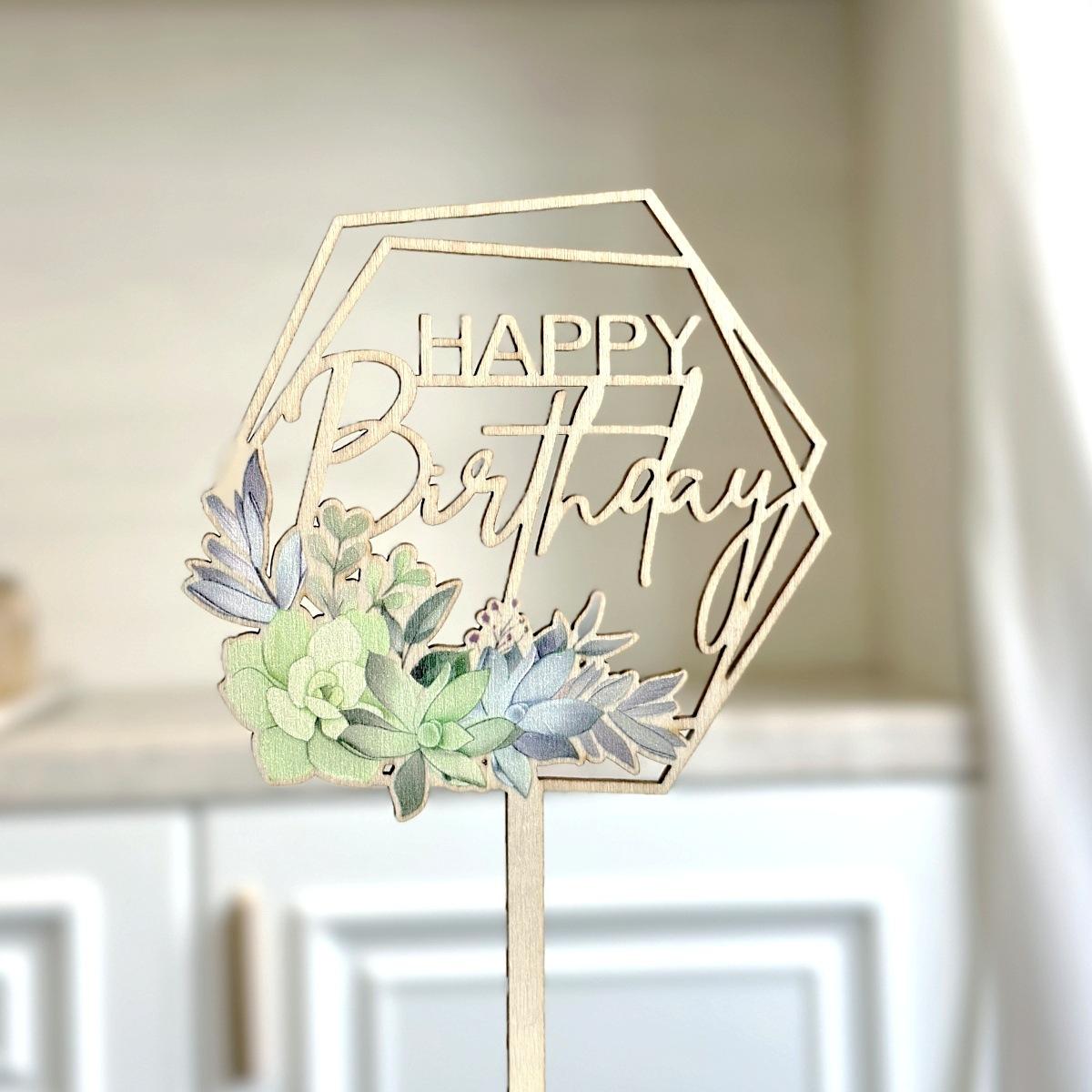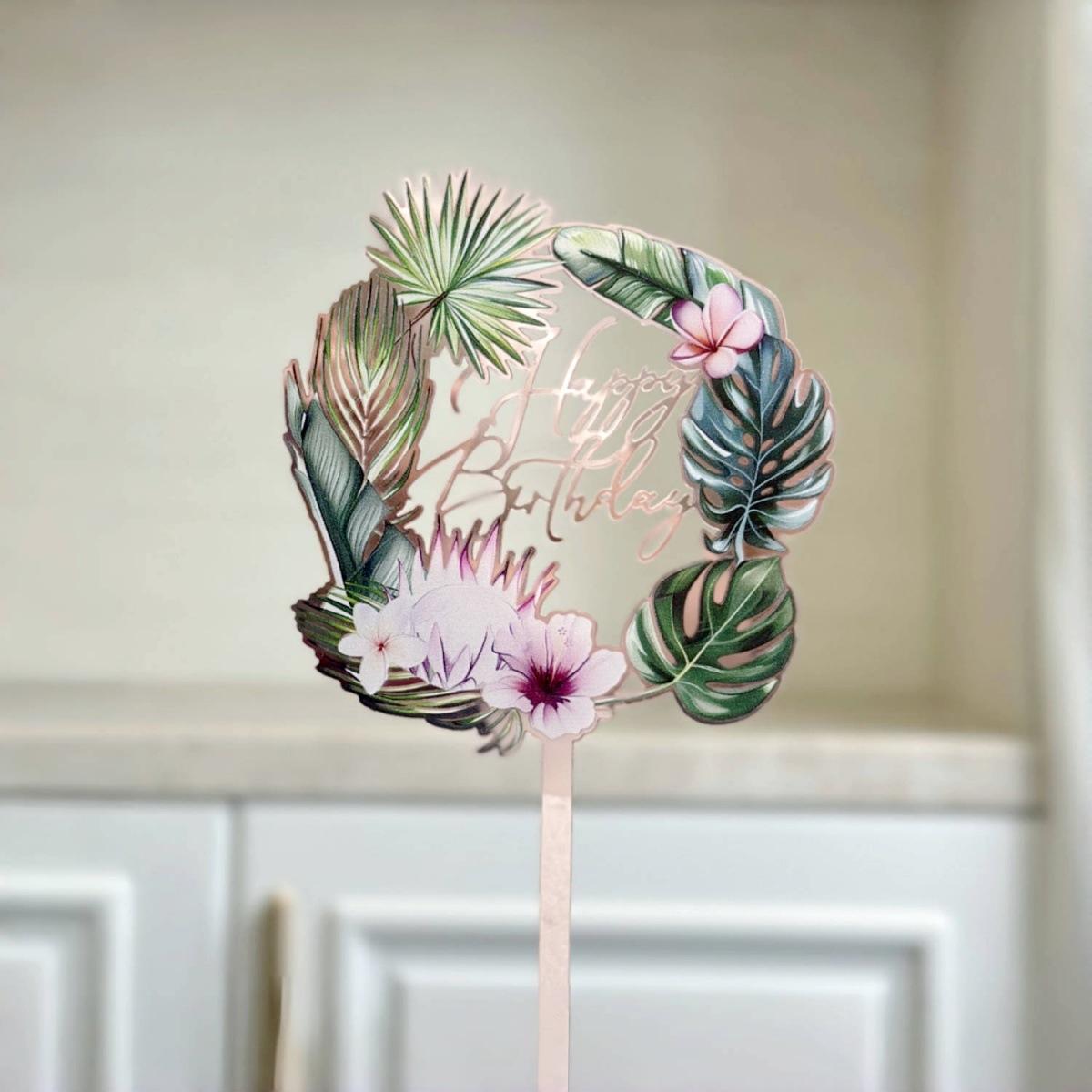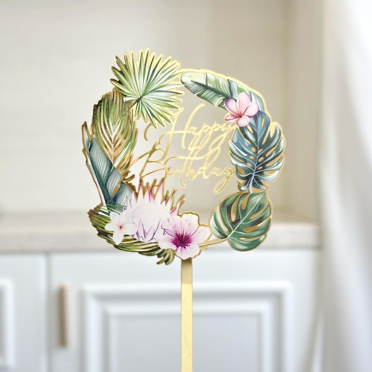 Cross Border Ins Style Impressão a cores Acrílico Decoração de bolo Fontes de festa Feliz aniversário Bolo Plug-in Cartão de bolo