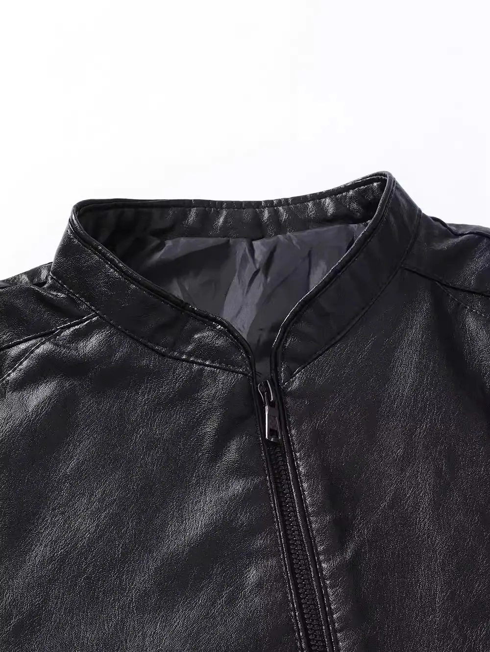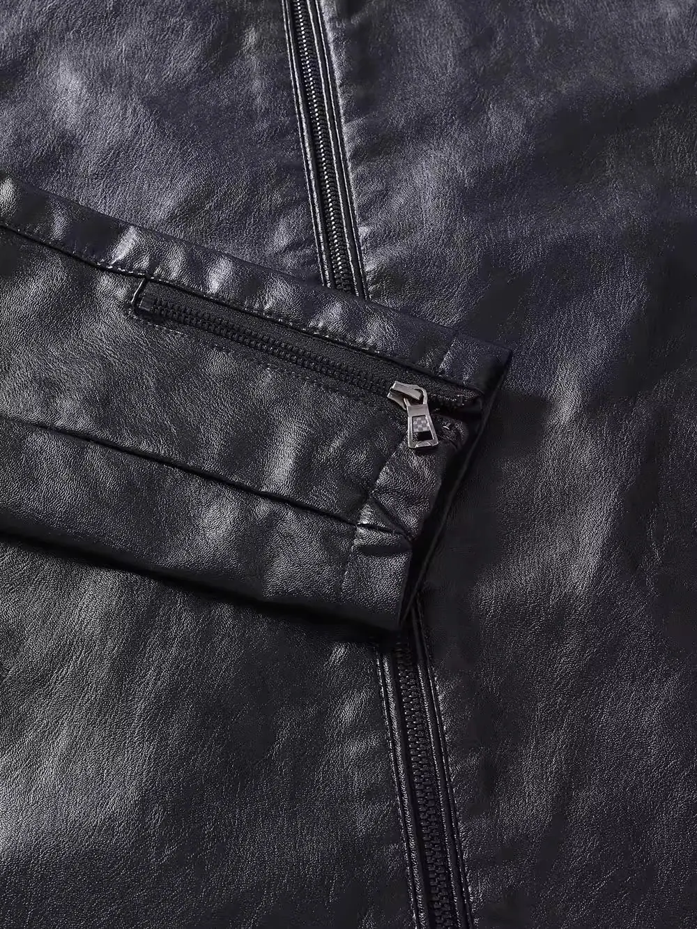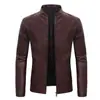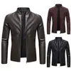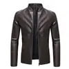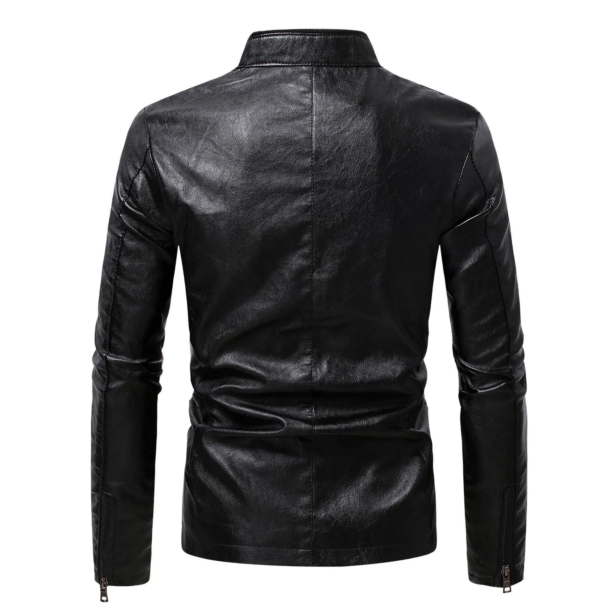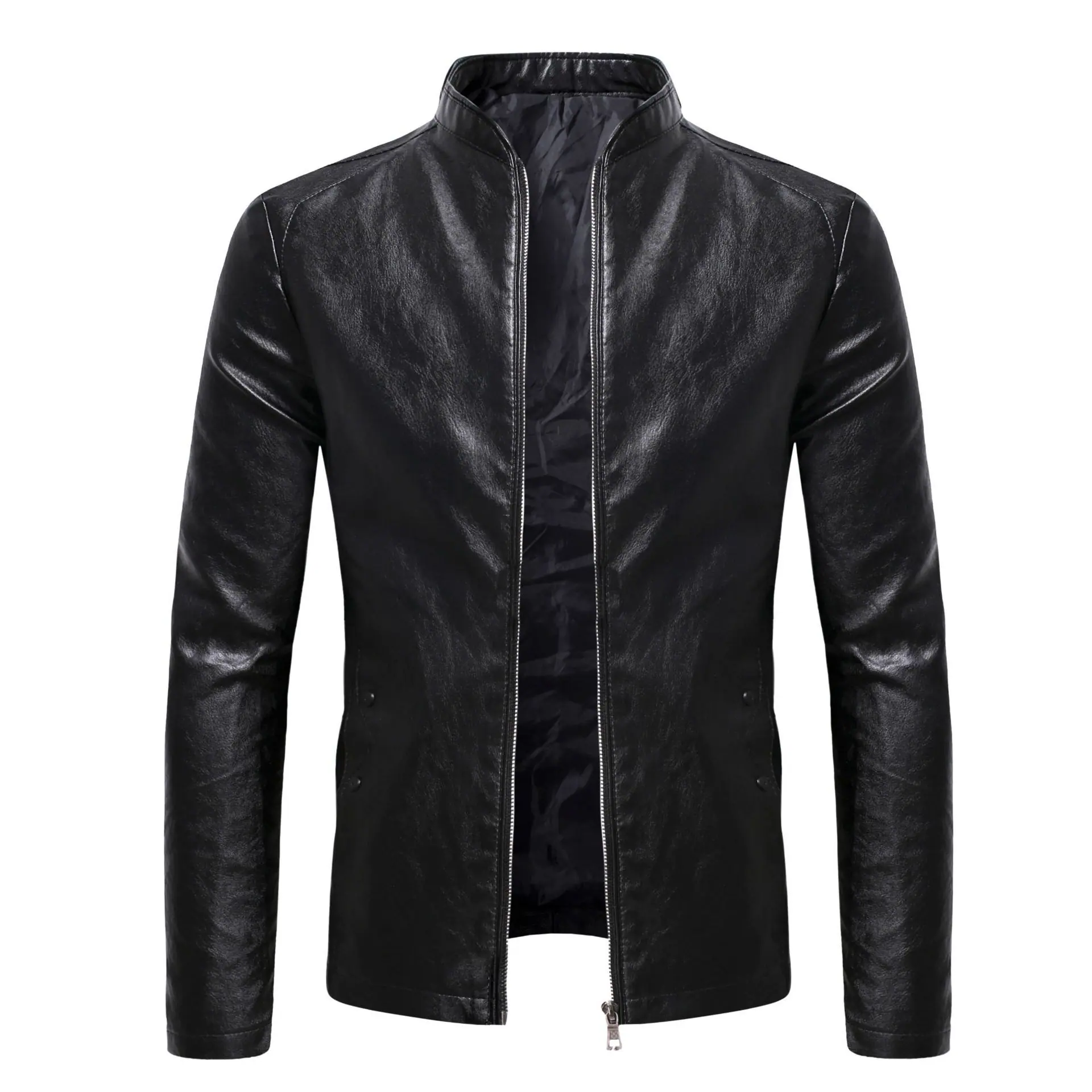 Outono Novo Comércio Exterior Transfronteiriço Gola Alta Jaqueta de Couro Masculina de Motociclista Lavada Pu Jaqueta de Couro Ajustada Masculina Casaco