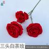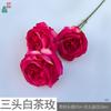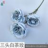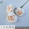 Três cabeças de chá branco rosa único ramo broto núcleo rosa decoração de casamento arranjo de flores flor de seda estágio de casamento flor linha flor falsa