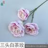 Compre Três cabeças de chá branco rosa único ramo broto núcleo rosa decoração de casamento arranjo de flores flor de seda estágio de casamento flor linha flor falsa no atacado no Joom.pro