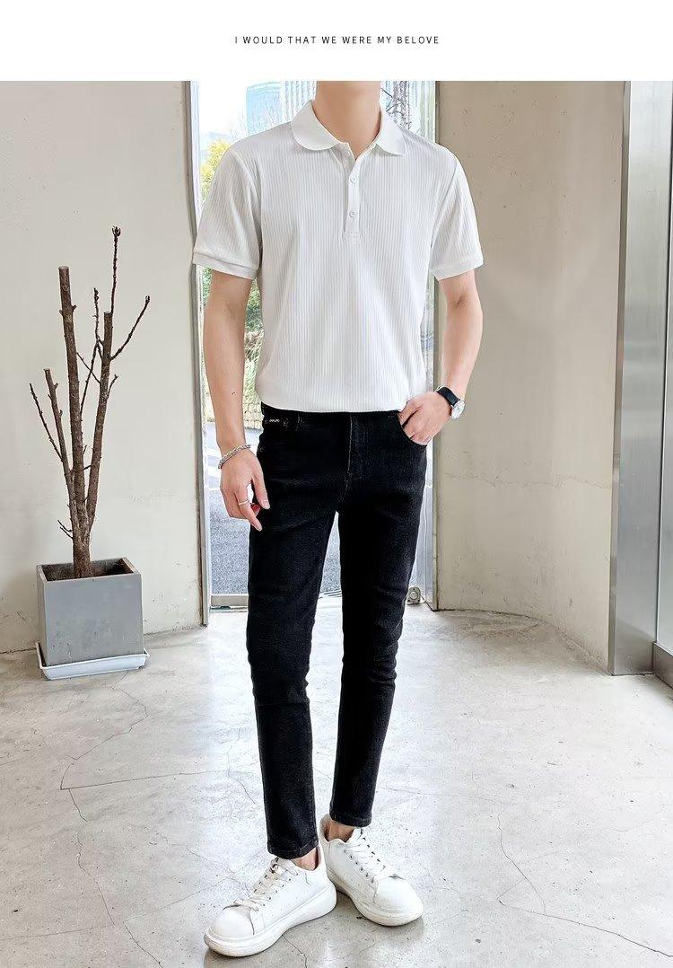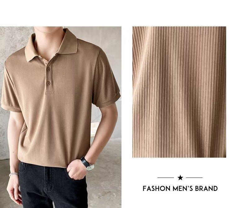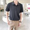 Camisa polo de lapela estilo Hong Kong primavera 2024, camiseta masculina de manga curta, camiseta da moda, solta, versátil, camiseta da moda de verão, meia manga