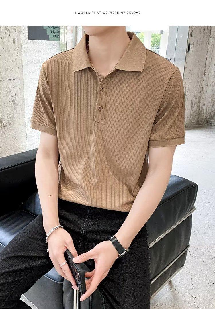 Verão Nova Camisa Polo de Lapela Masculina de Manga Curta Leve de Negócios Casual para Todos os Pares de Trabalho Camiseta Masculina Juventude Estilo Elegante