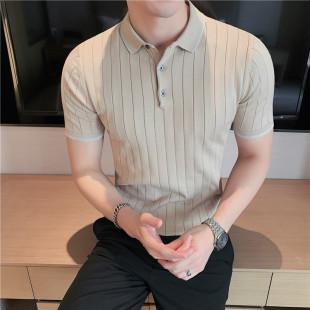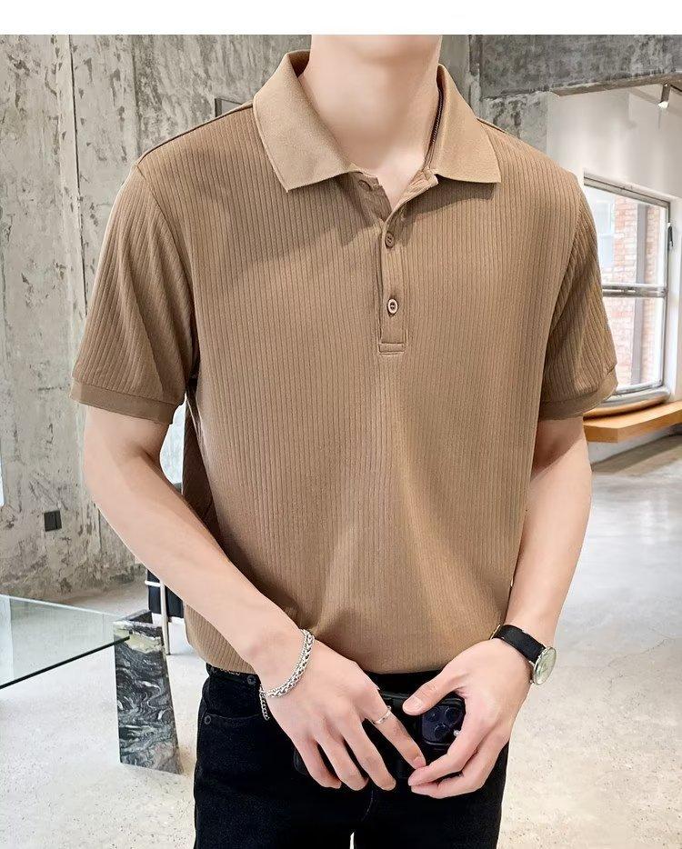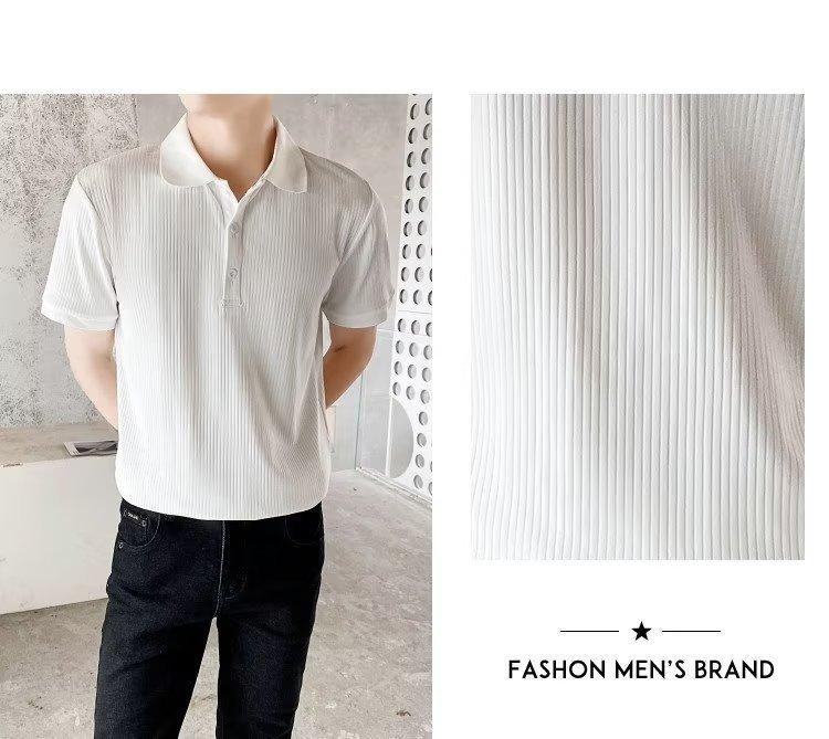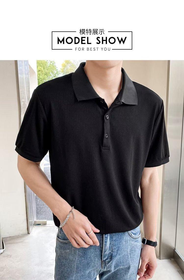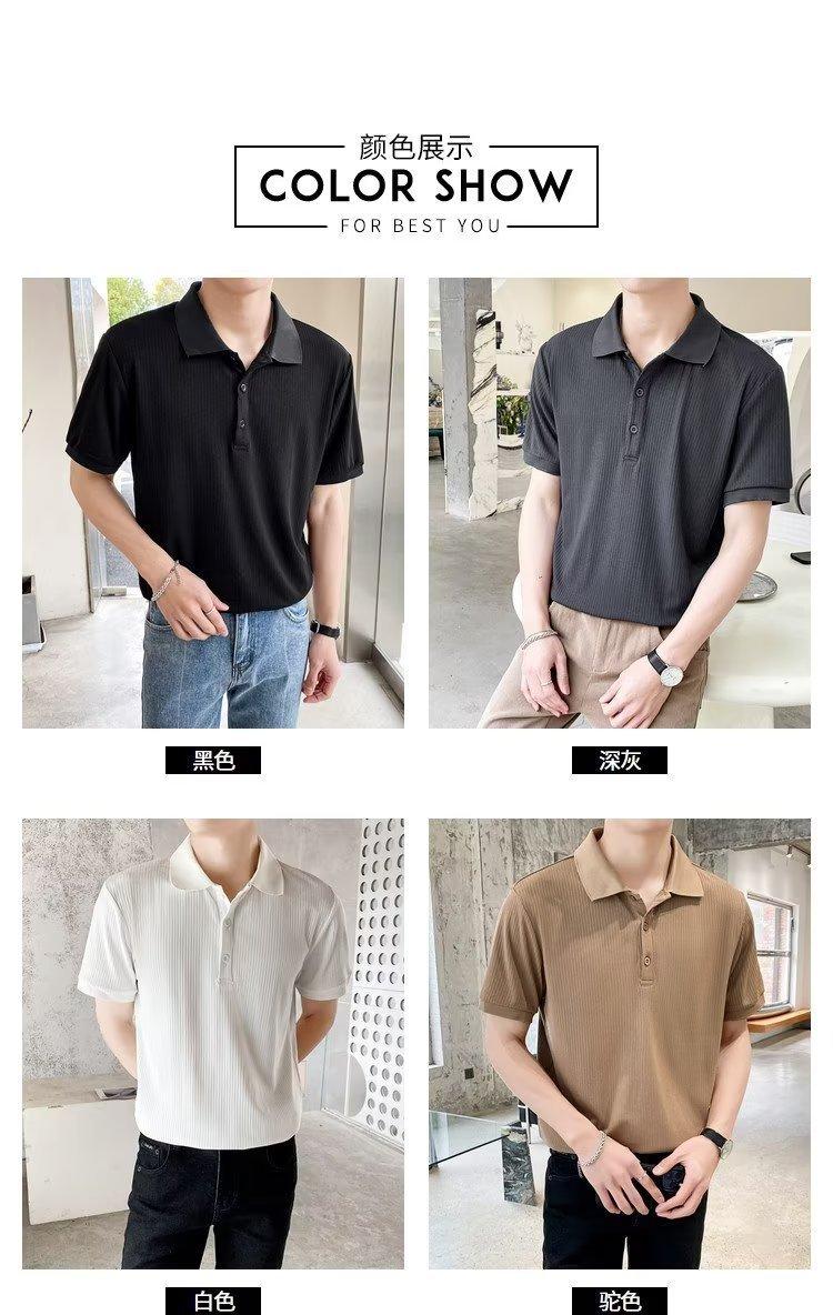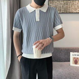 2024 Verão Nova Camisa Polo De Manga Curta Masculina Coreana Fina Contraste Casual Lapela Seda Legal Malha Manga Curta