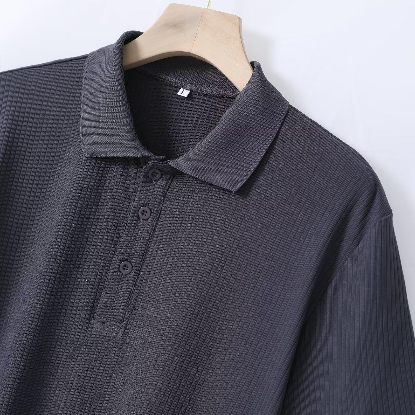 Moda malha gelo seda manga curta camiseta masculina gola camisa 2024 verão e outono cor sólida escorregadio camisa polo meia manga roupas masculinas