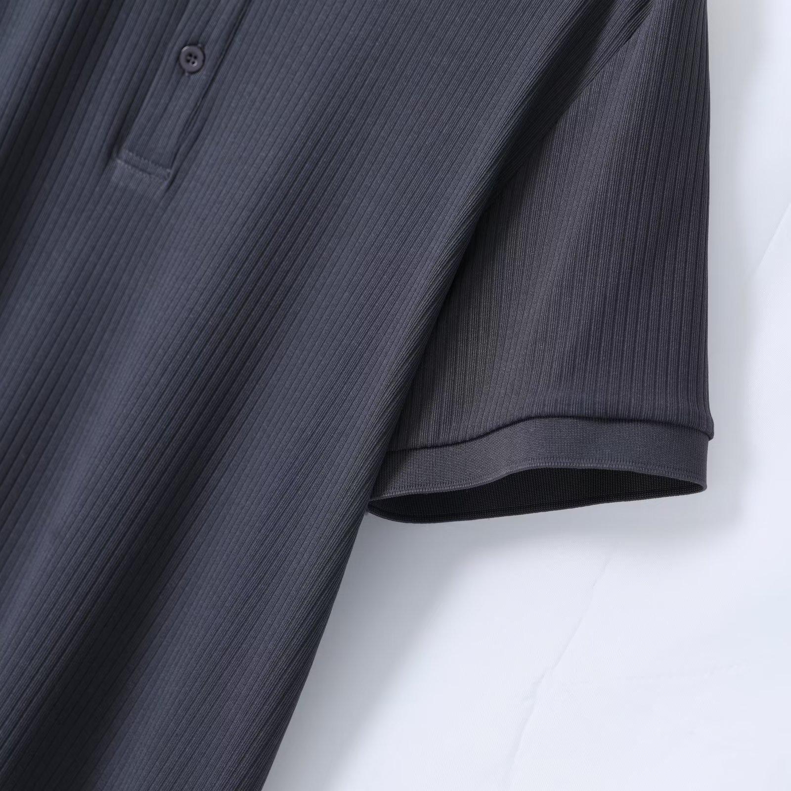 2023 Ice Silk POLO Camisa Masculina Drape Escuro Listrado Oco Malha Manga Curta Camiseta Slim Respirável Elástico Top