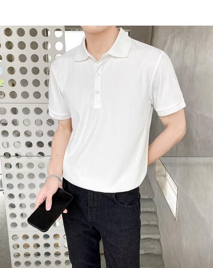 Camiseta masculina de manga curta de seda gelada, camisa polo, verão 2023, nova tendência da moda, lapela, slim, meia manga, versátil, casual