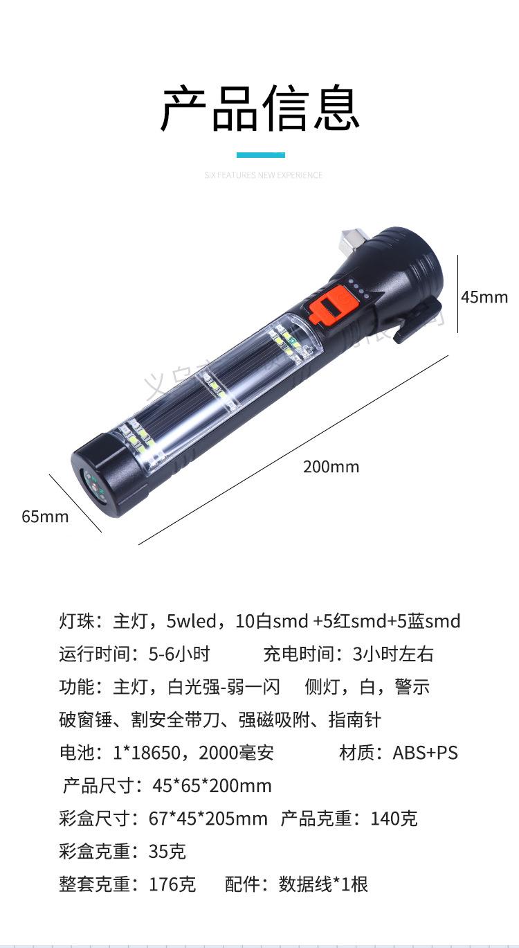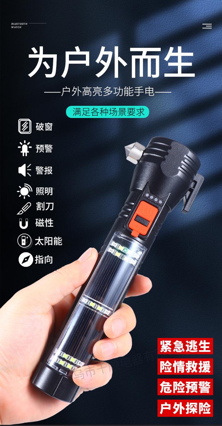 Martelo de segurança do carro multifuncional lanterna 8 em 1 disjuntor da janela do carro martelo de fuga fogo salva-vidas de emergência