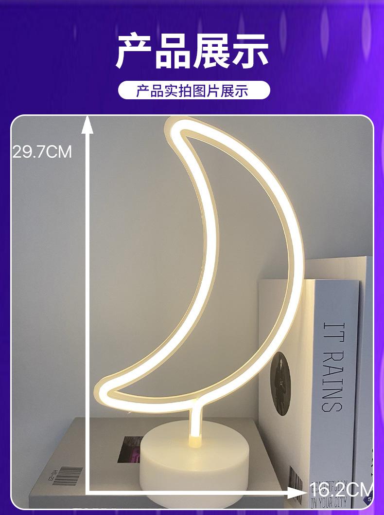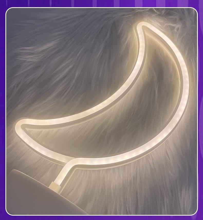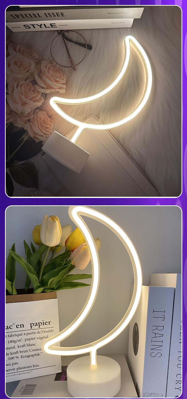 Luz Neon LED com Base Separada, Lâmpada de Decoração para Casa, Ins Lua Decoração Criativa de Quarto Luz de Atmosfera, Luz Colorida, Super Brilhante