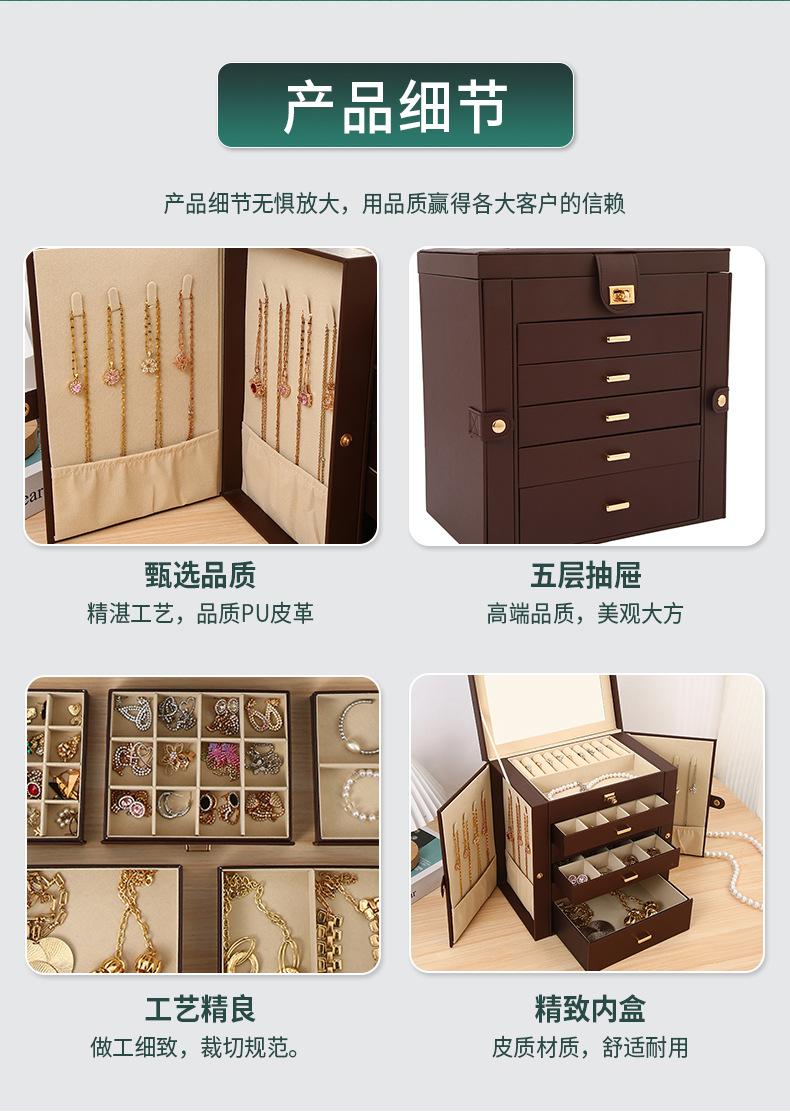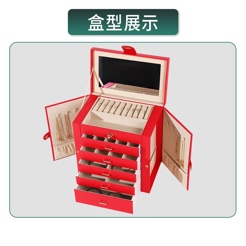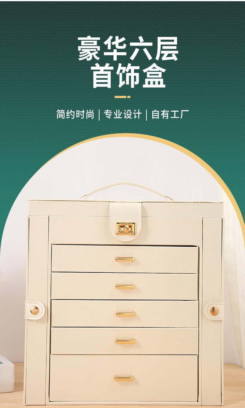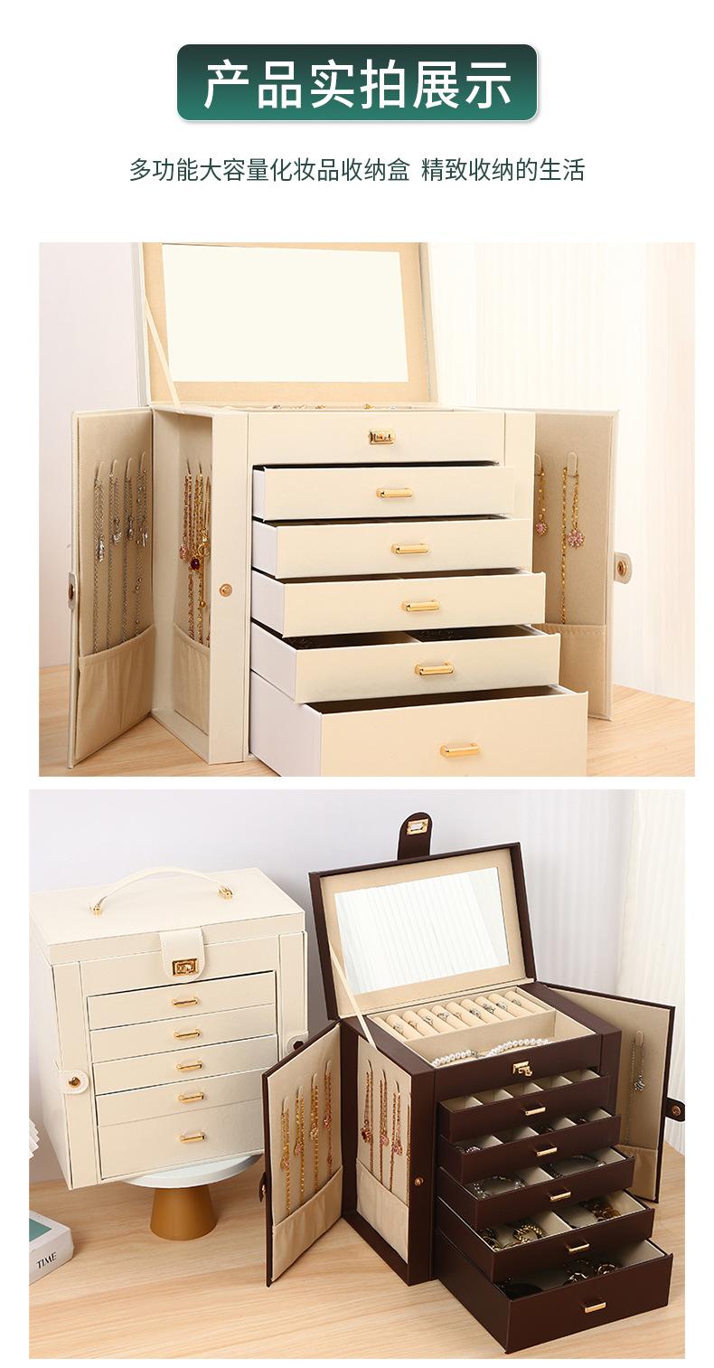 Caixa de joias de luxo com seis camadas e grande capacidade, com espelho, caixa de armazenamento de joias, gaveta, brincos, colar, caixa de joias