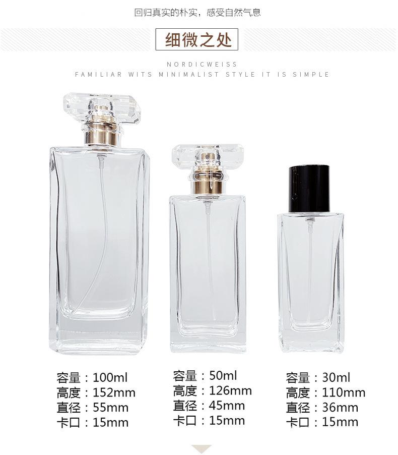 Frasco de Perfume Frasco Vazio Vidro Spray Cartão Frasco de Perfume 30ml Quadrado Plano Frasco Recarregável Spray Recarregável