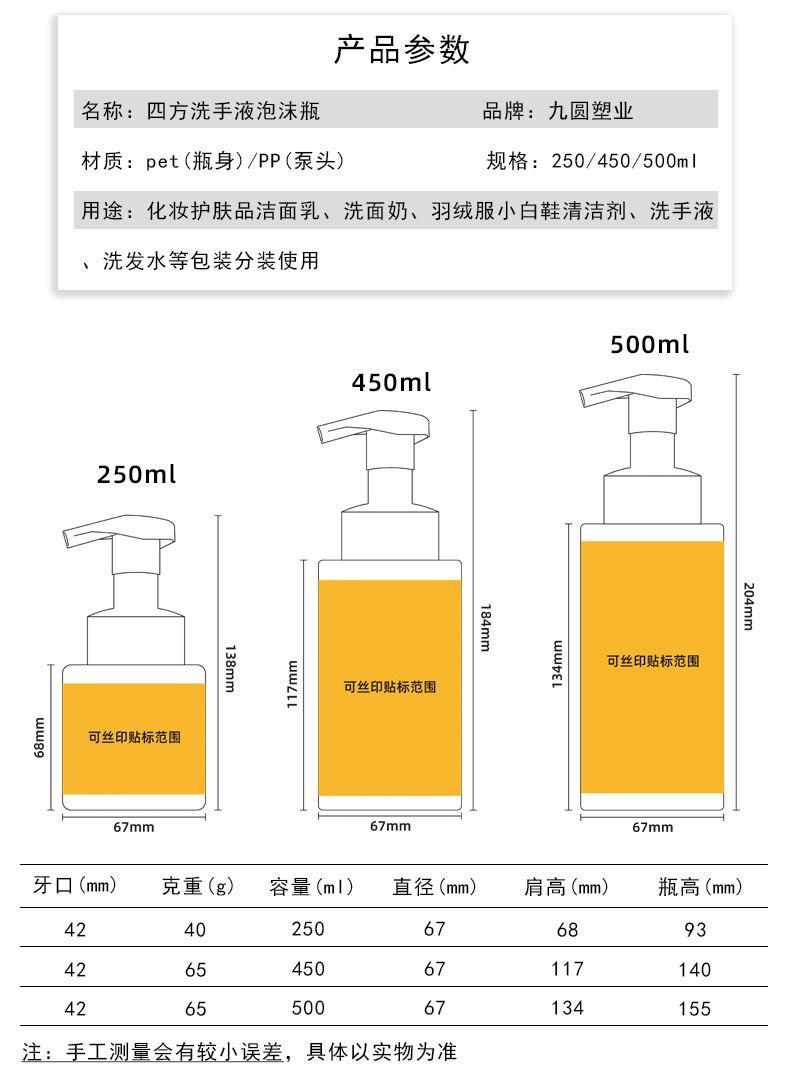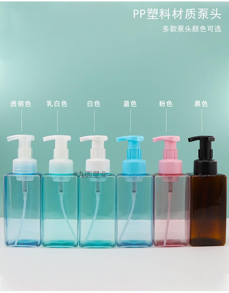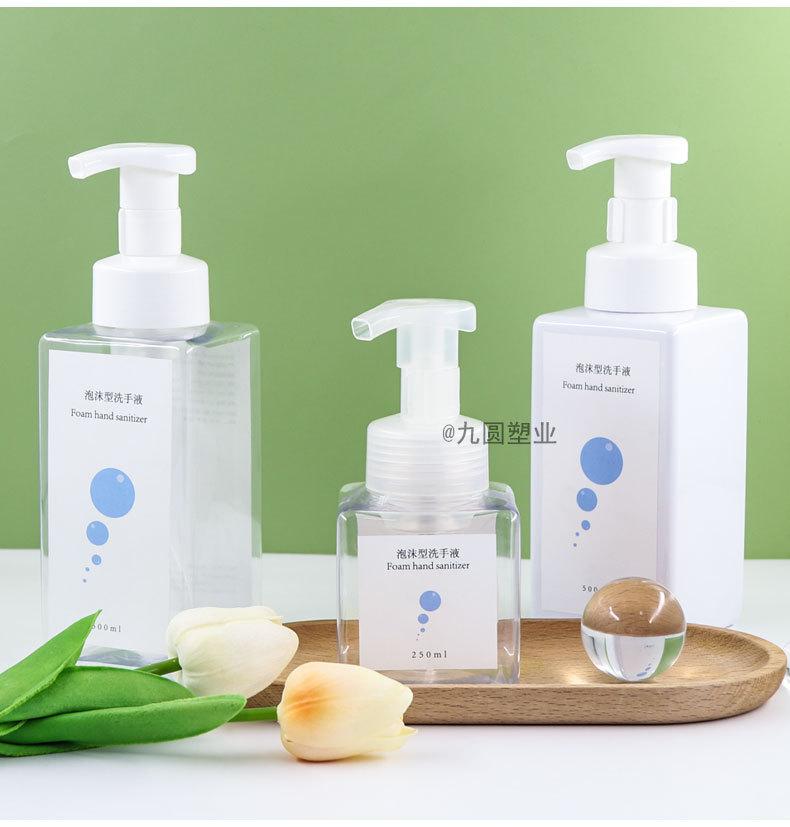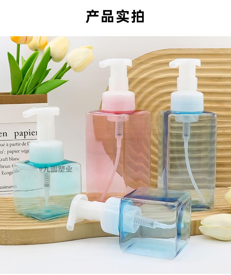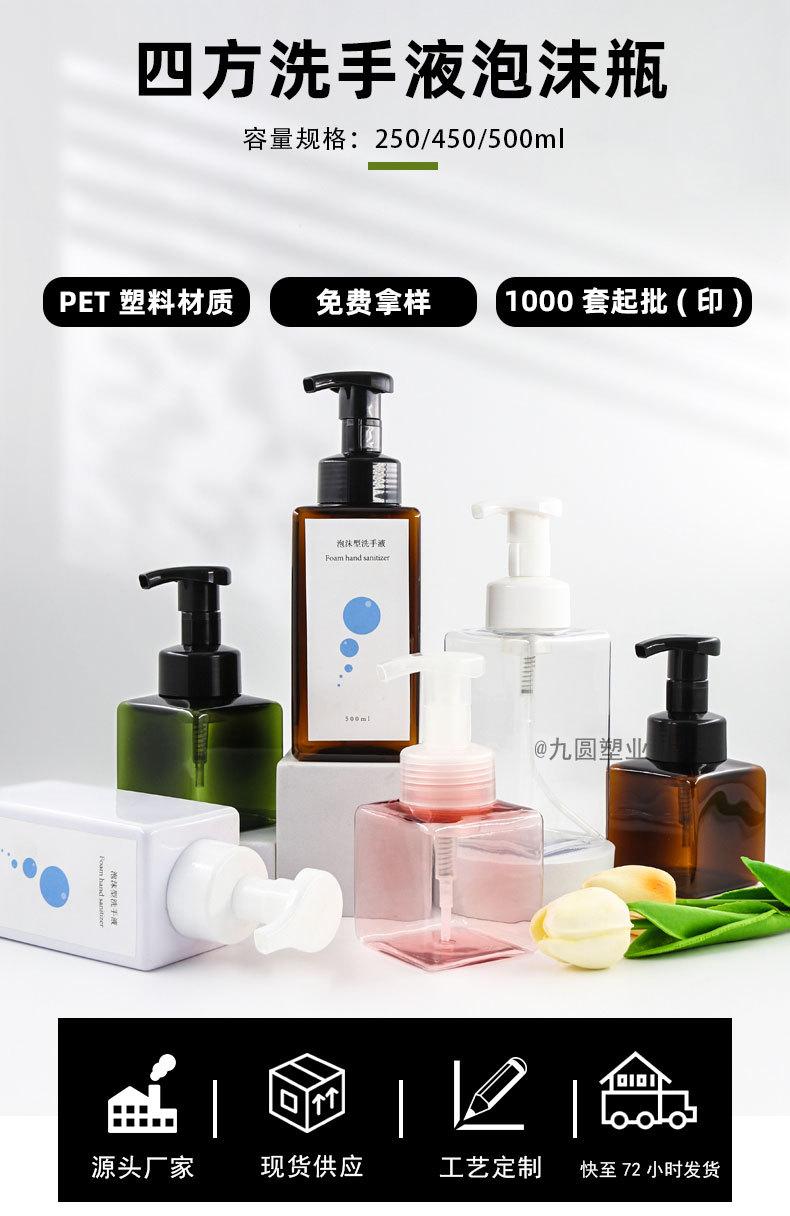 Frasco quadrado de higienizador para as mãos, produto para cuidados com a pele de plástico para animais de estimação, limpador, frasco vazio de 500 ml, gel de banho de pressão, frasco de espuma