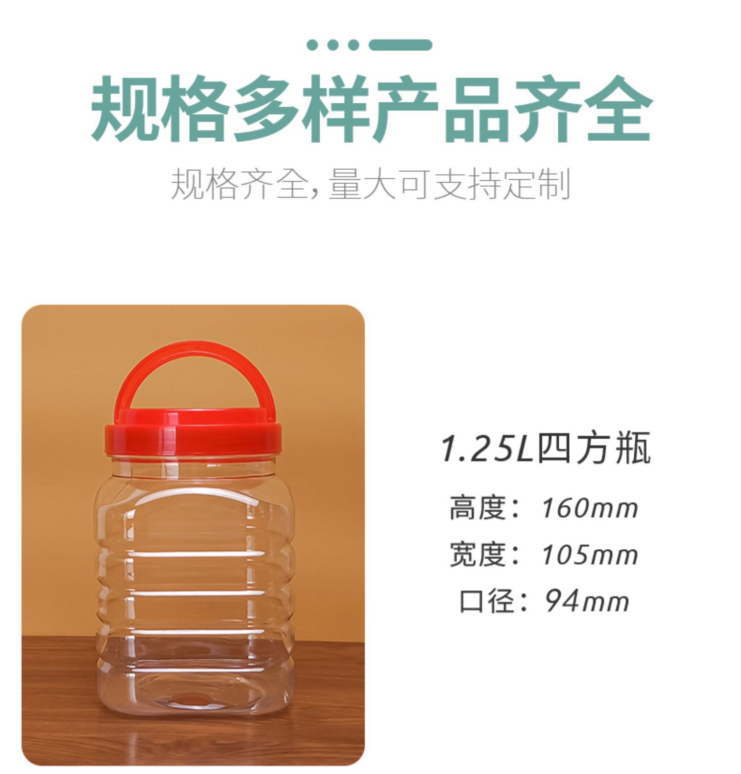 Compre Frasco plástico selado quadrado garrafa do mel com o empacotamento transparente do produto comestível do diâmetro do multi-tamanho grande do animal de estimação da tampa no atacado no Joom.pro