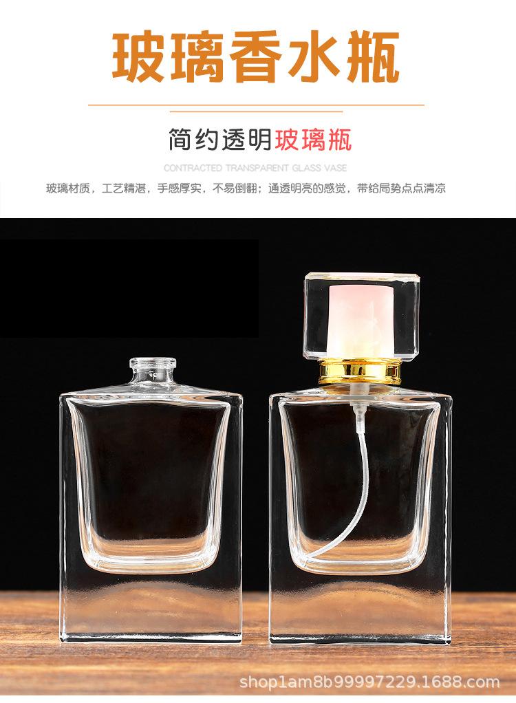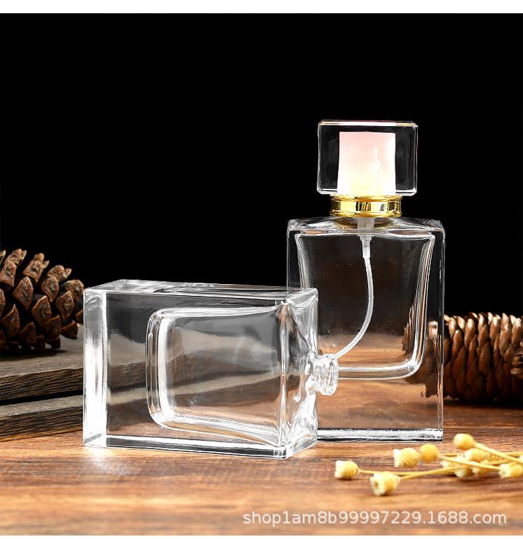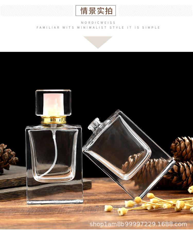 Frasco Recarregável de Perfume 50ml Frasco de Perfume Spray Encaixável Quadrado Plano Transparente Tipo Pressão Recarregável Frasco de Vidro Spray Frasco Vazio