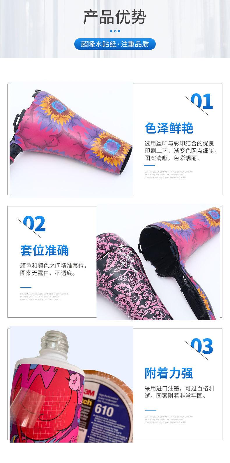 Adesivos de Água para Produto Eletrônico Personalizado, Secador de Cabelo de Plástico, Impressão por Transferência de Água para Secador de Cabelo, Impressão por Transferência de Água com Padrão de Cacau Fornecido por Fabricantes