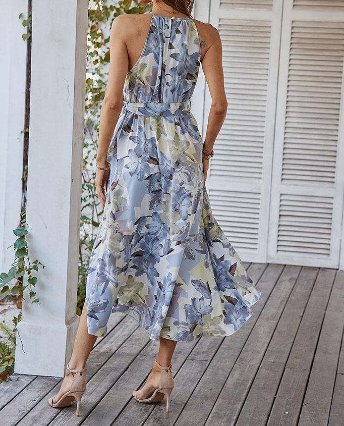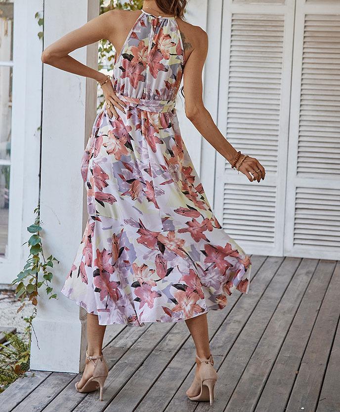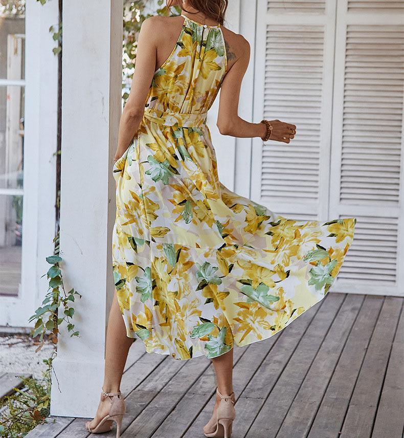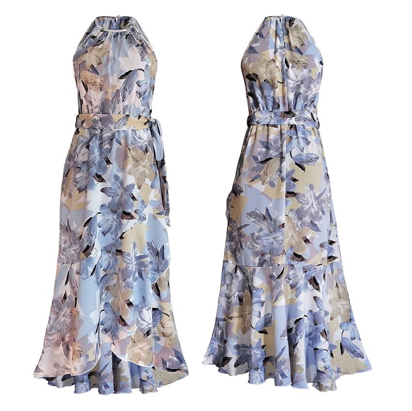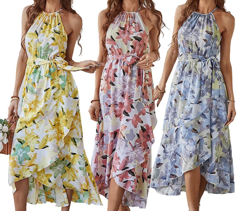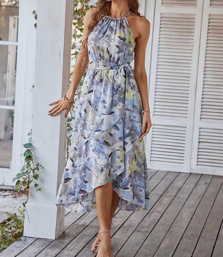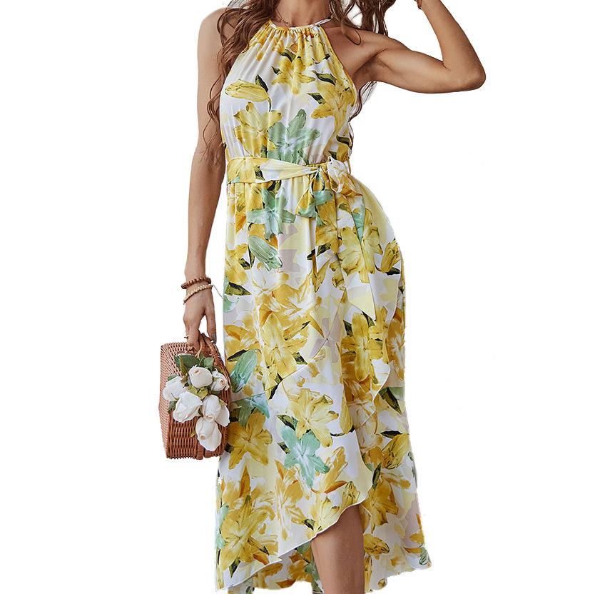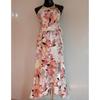 Moda popular europeia e americana transfronteiriça estampada primavera e verão nova saia suspensório casual férias praia saia em estoque