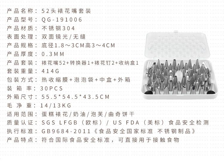 Aço inoxidável 304 conjunto de bico de decoração de bolo 52 cabeça de decoração bico conversor ferramentas de cozimento de bolo