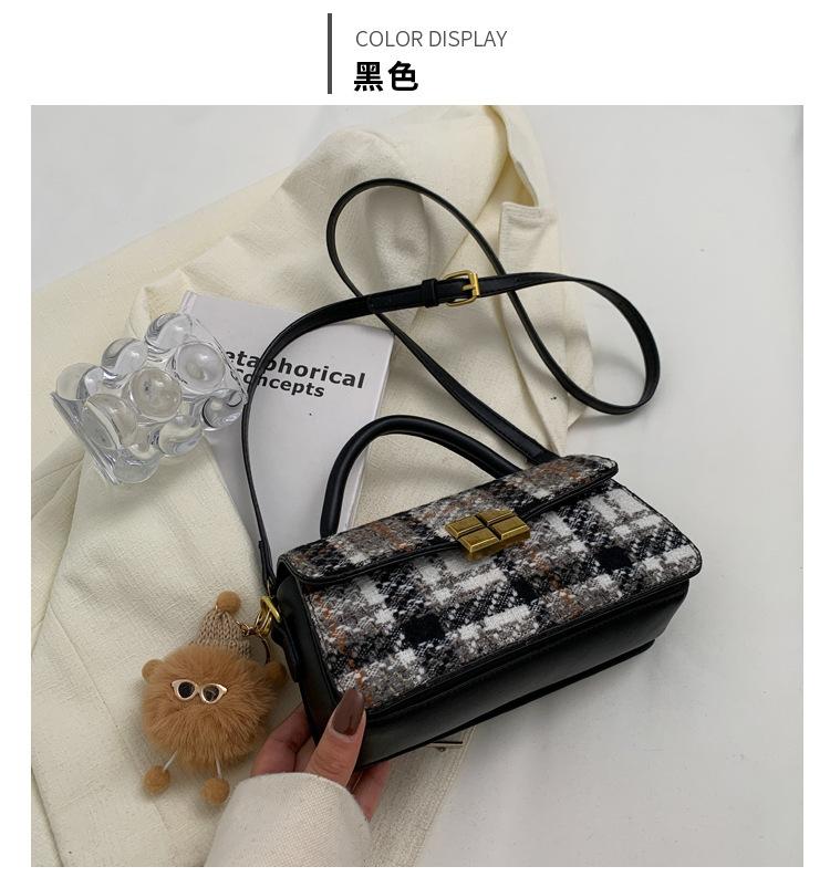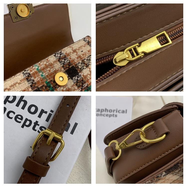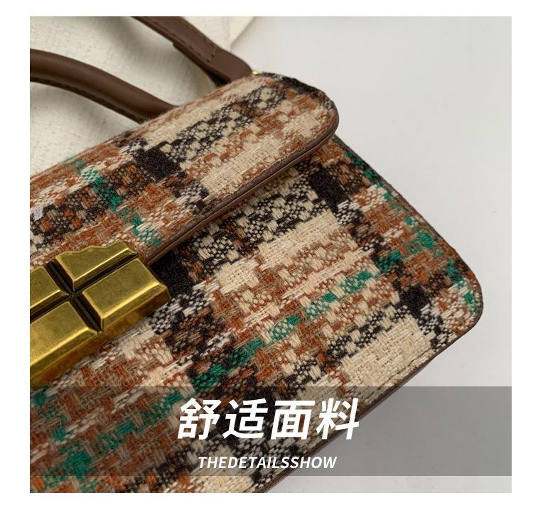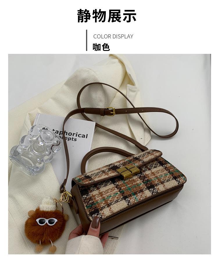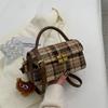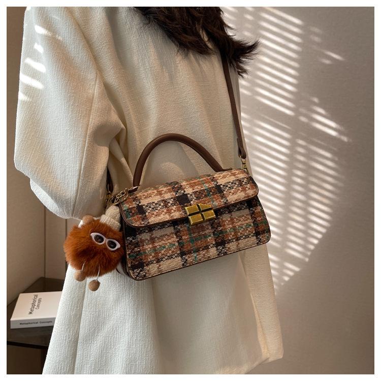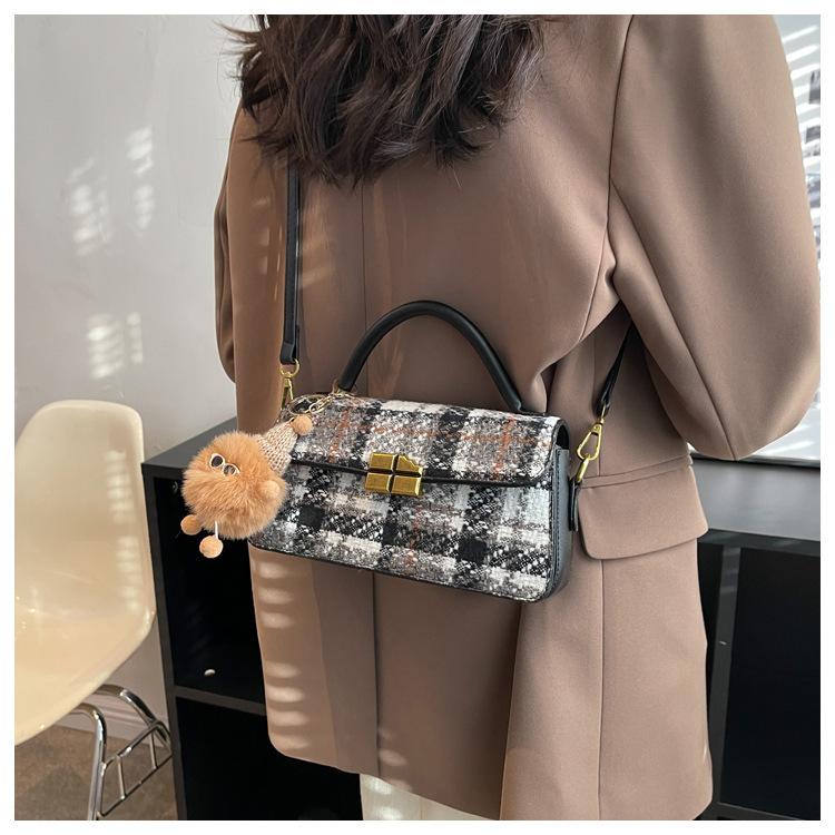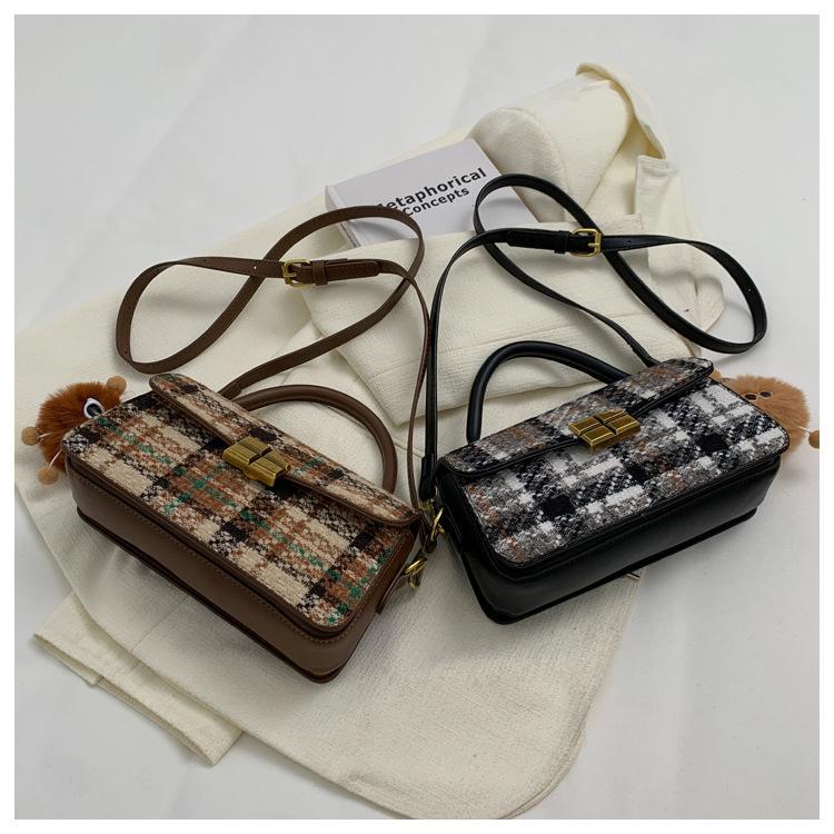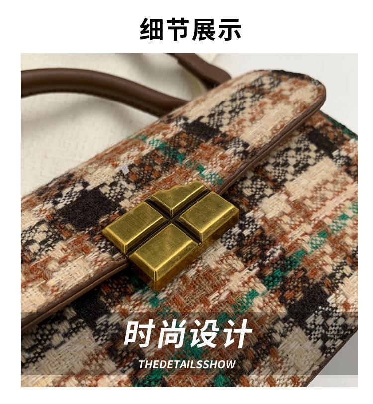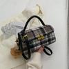 Bolsa pequena quadrada estilo Hong Kong, estilo perfumado, bolsa transversal de ombro da moda, estilo ocidental, bolsa pequena com textura de losangos, bolsa feminina xadrez