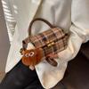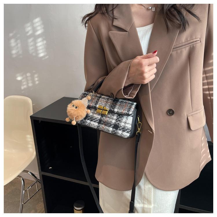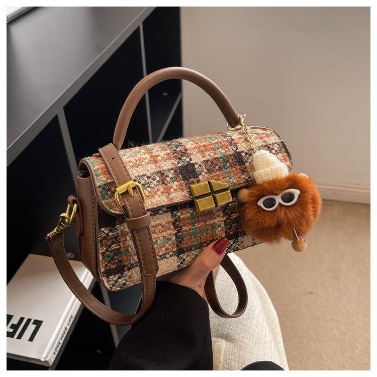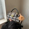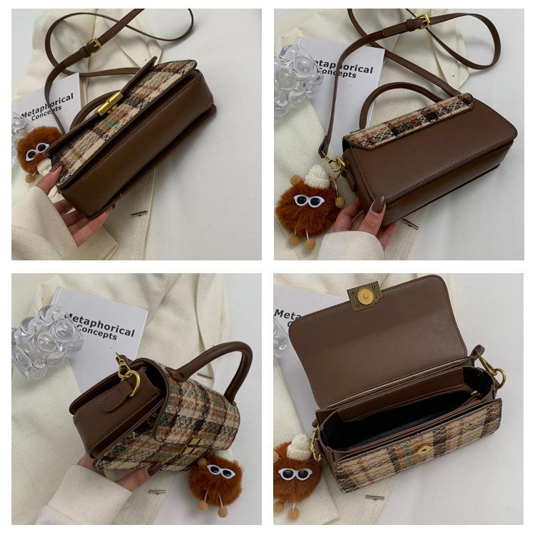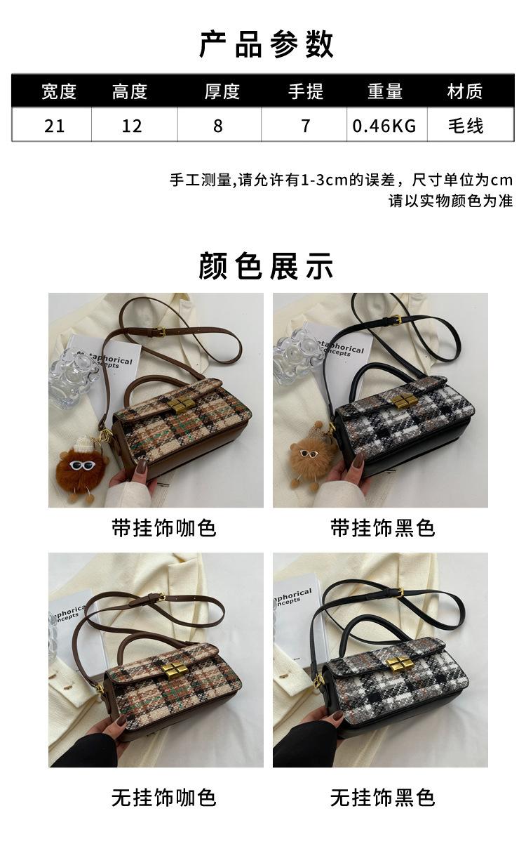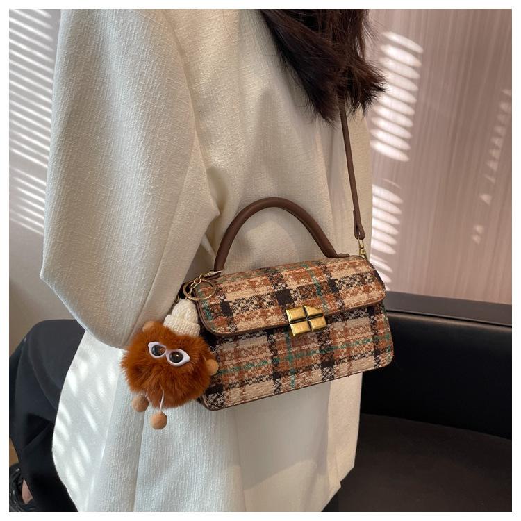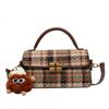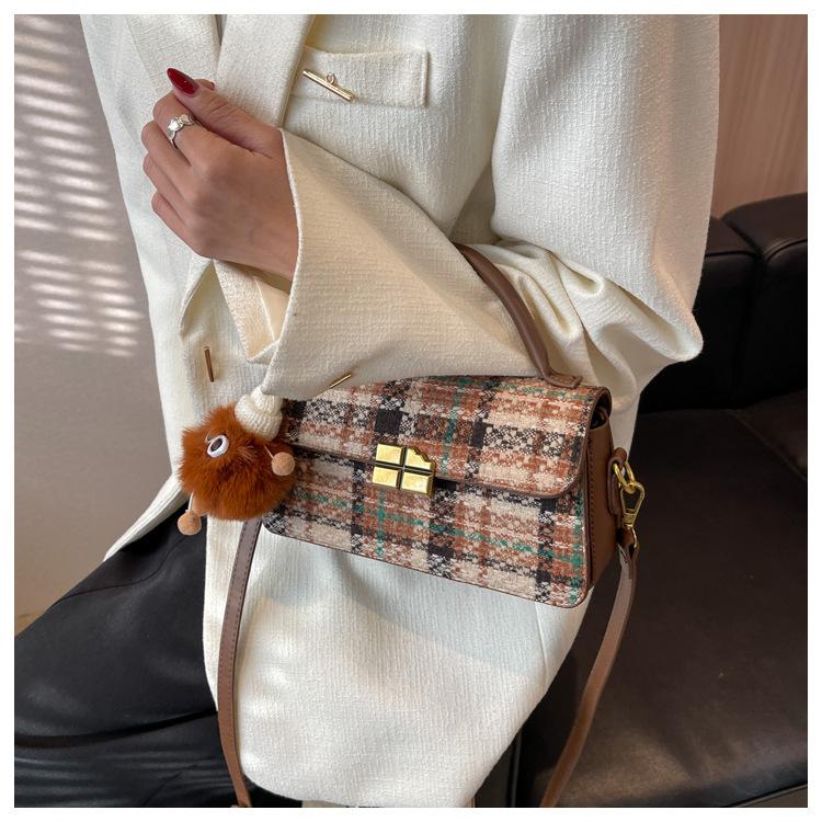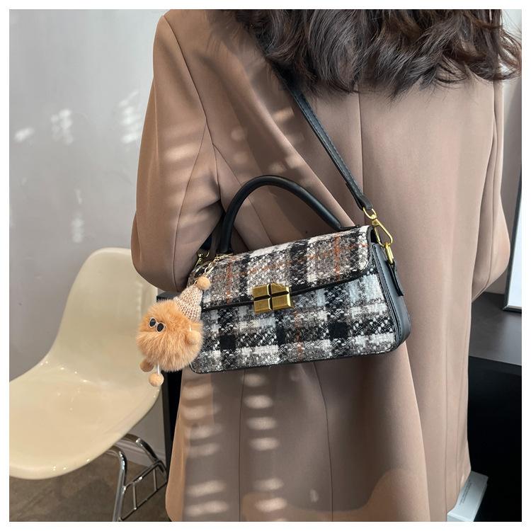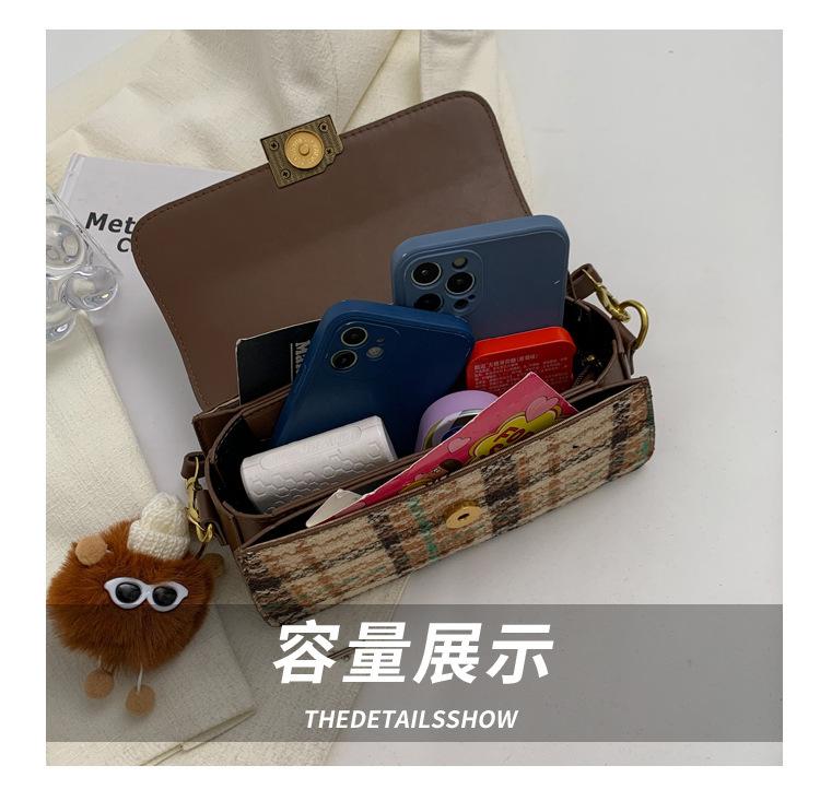 Bolsa pequena quadrada estilo Hong Kong, estilo perfumado, bolsa transversal de ombro da moda, estilo ocidental, bolsa pequena com textura de losangos, bolsa feminina xadrez