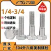 Hexágono Externo de Aço Inoxidável 304 Parafuso dos EUA Hexágono Externo Parafuso de Cabeça Hexagonal 7/16 5/16 1/4