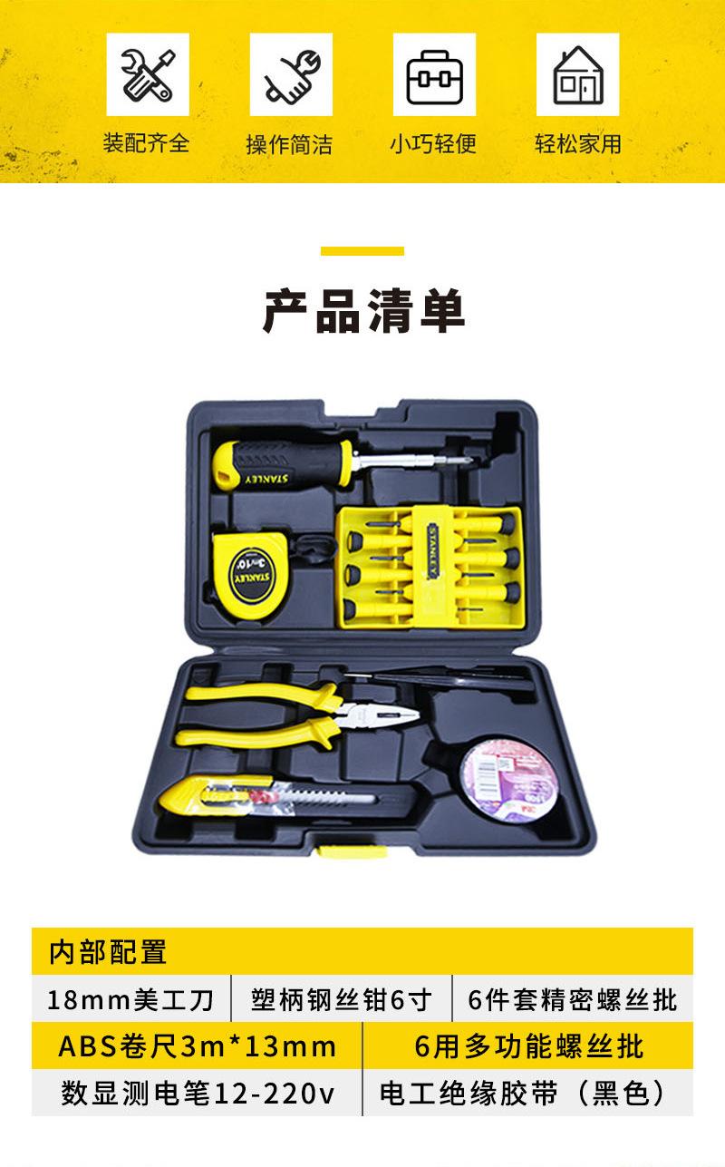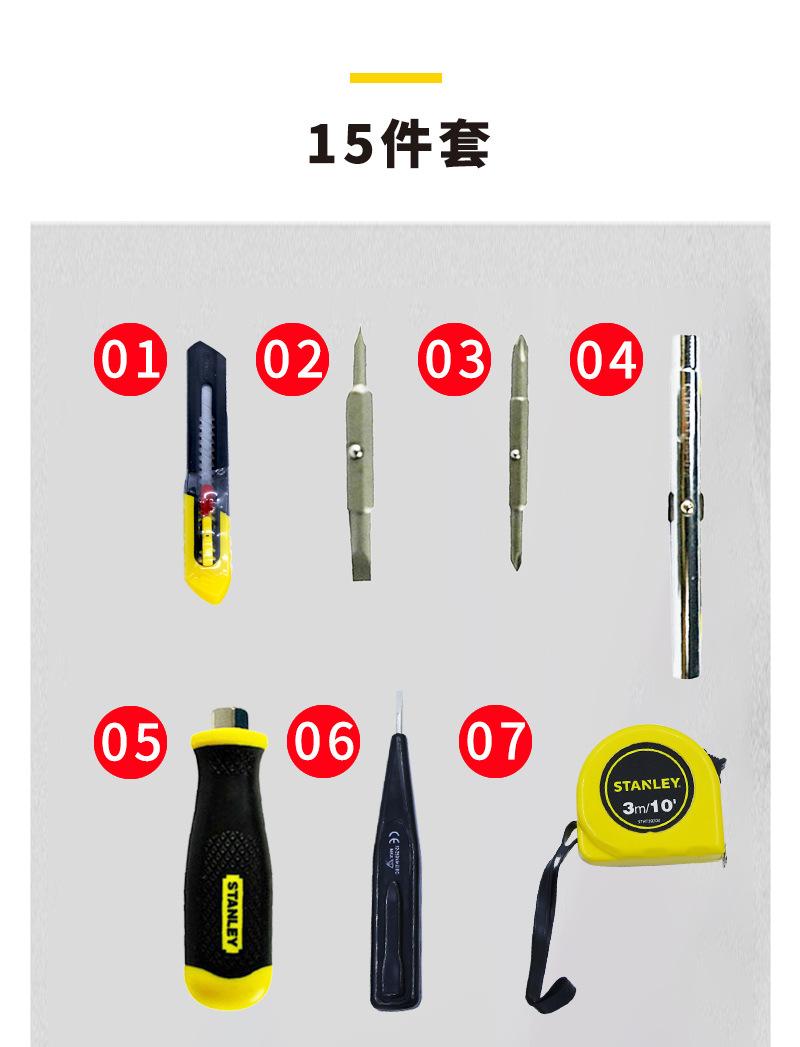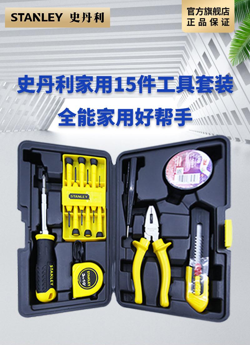 Stanley 15 peças de conjunto de ferramentas de hardware doméstico caixa de ferramentas de reparo carro multi-função conjunto de ferramentas de combinação
