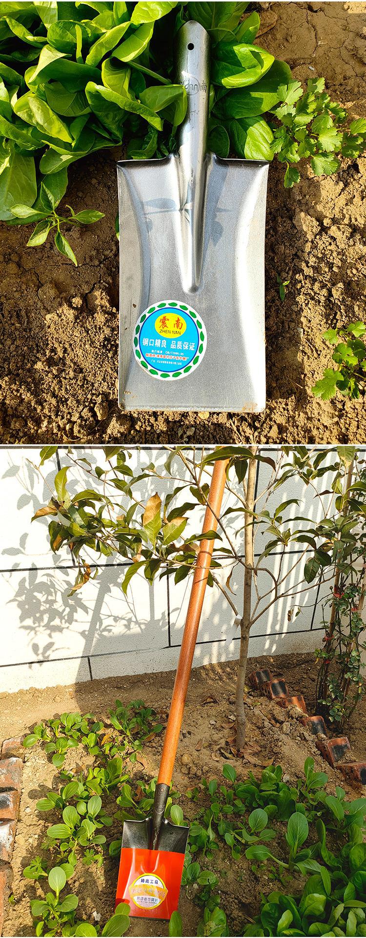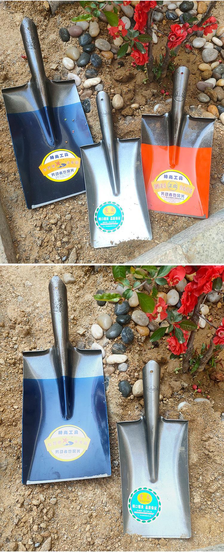 Pá de cabeça quadrada pequena agrícola para escavação de solo, sulcos para plantio de árvores, pá achatada, pá de loach, aço branco, pedreiro