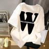 Camiseta Estampada com Decote Redondo Estilo Casual Feminina 2023 Verão Novo Emagrecimento Solto Brincalhão Camiseta de Manga Curta para Todos os Combos