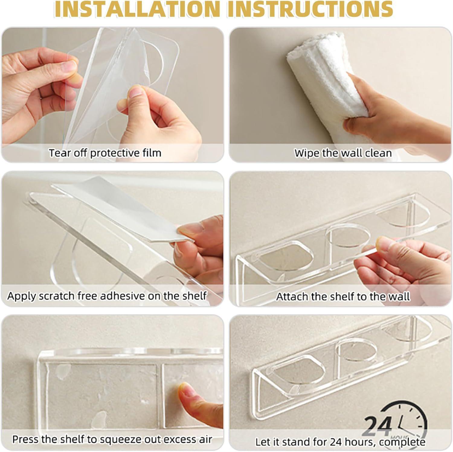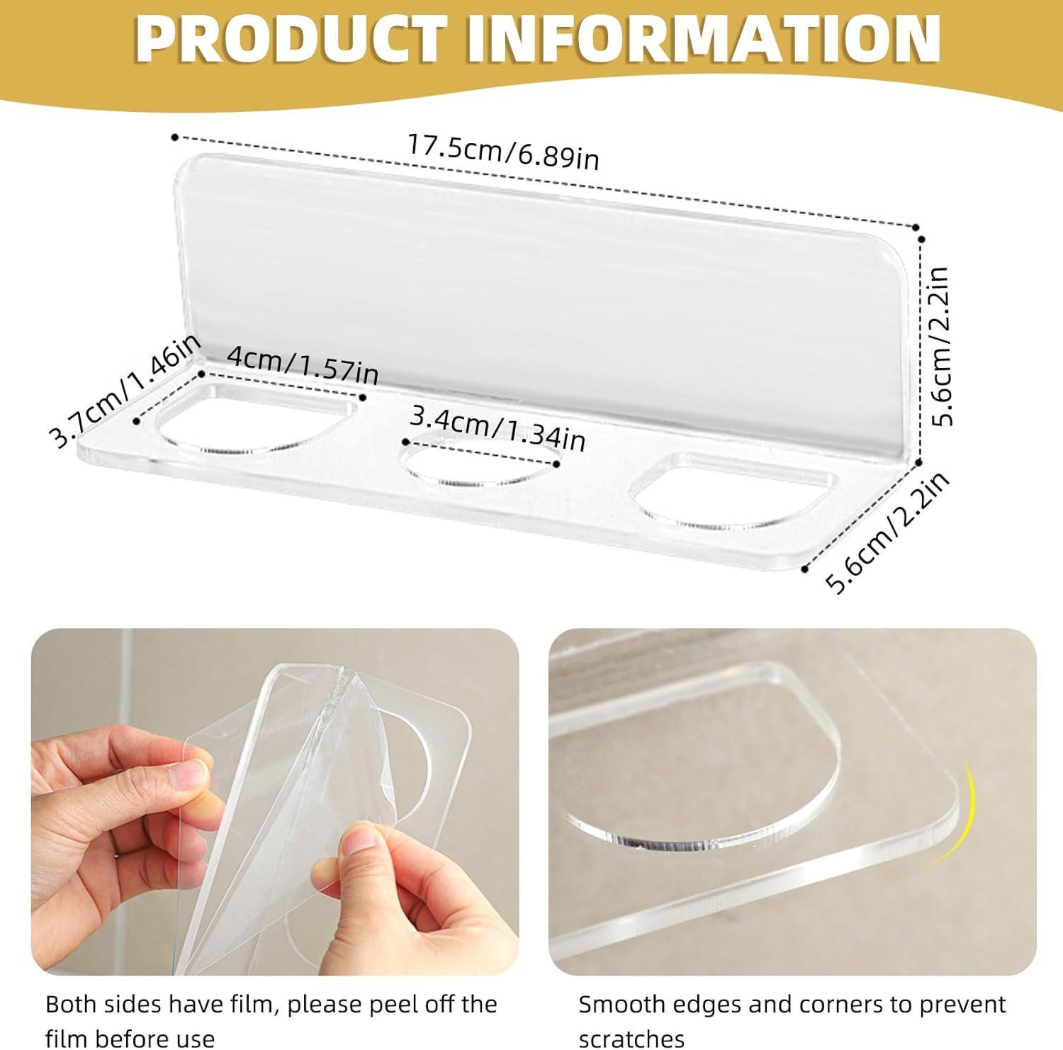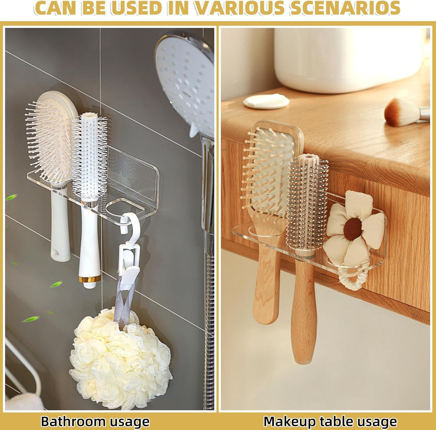 Nome do produto: Suporte de pente de acrílico para banheiro, organizador de ferramentas para cabelos pegajosos, montado na parede, sem pregos, com 3 furos
