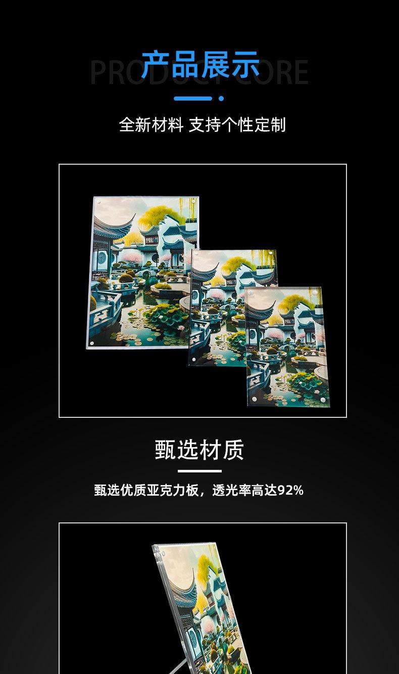 Atacado de fábrica transfronteiriço porta-retrato magnético acrílico transparente 6 polegadas exibição dupla face vidro cristal forte suporte pendular magnético