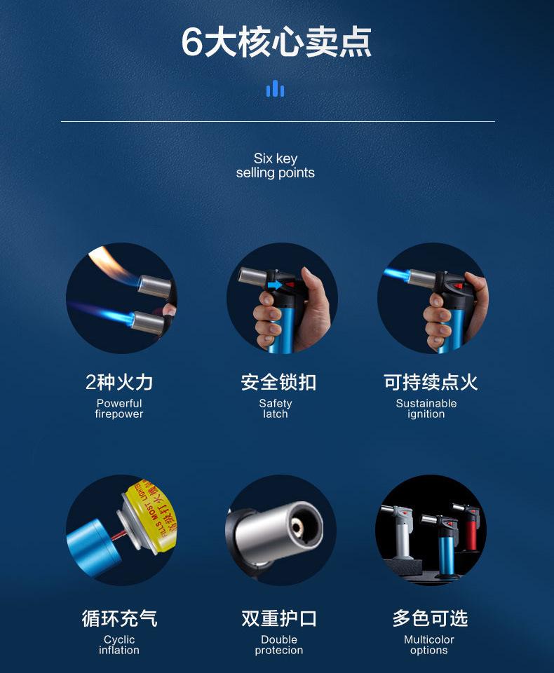 Isqueiro à prova de vento moxabustão de charuto arma de fogo churrasco cozimento pistola de pulverização inflável pistola de soldagem de alta temperatura direto perfurando isqueiro