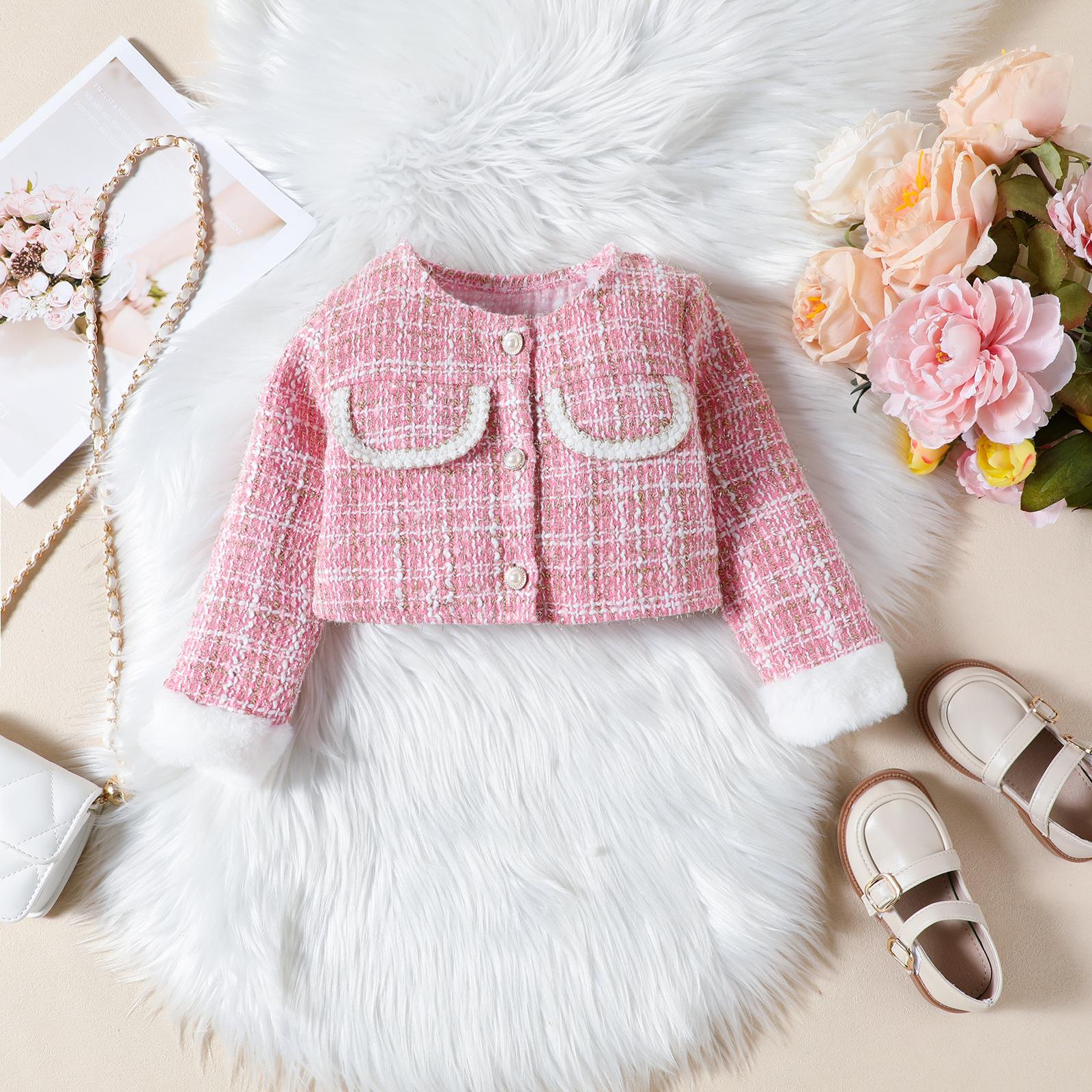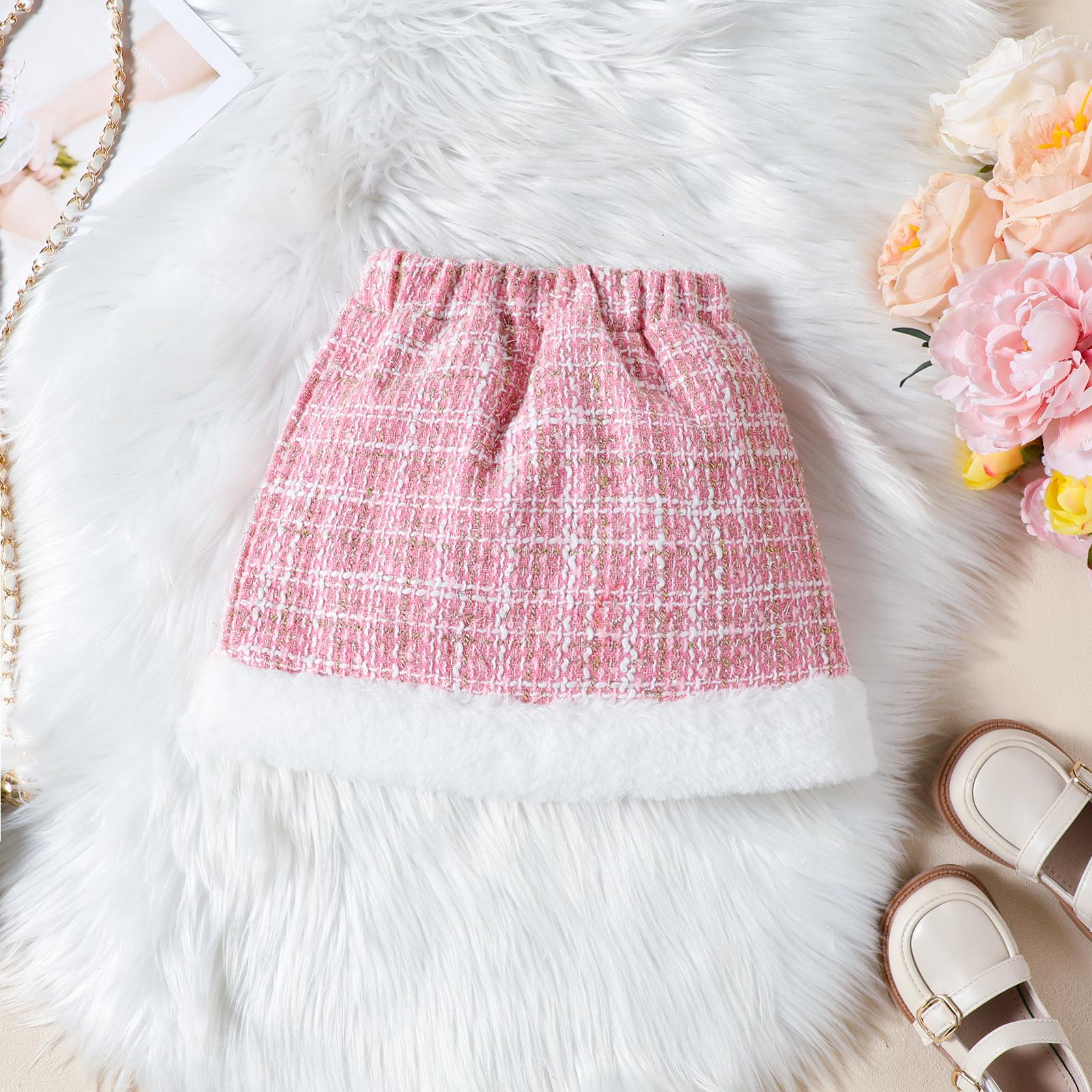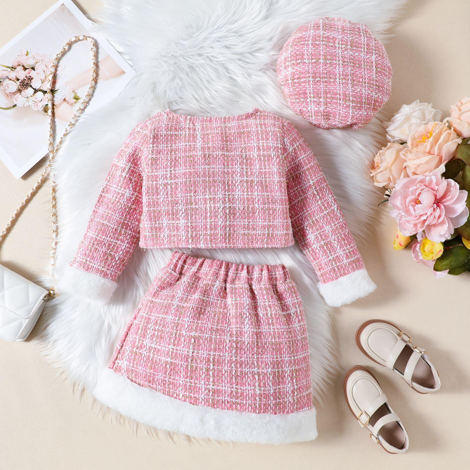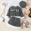 Versão coreana de roupas de inverno 2024, novas meninas, estilo perfumado, casaco, saia, chapéu, três peças, terno de estilo estrangeiro