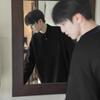 Cor Sólida Plus-Size Masculina Nova Camisa Início do Outono Gola Virada Camiseta de Manga Longa Estilo Moletom Design Masculino Estilo Preguiçoso Nicho Pesado