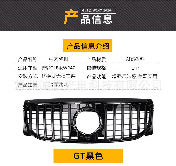 Adequado para Mercedes-Benz GLB X247 GT preto brilhante malha média GLB180/200 malha média 35/45 modificação da grade frontal