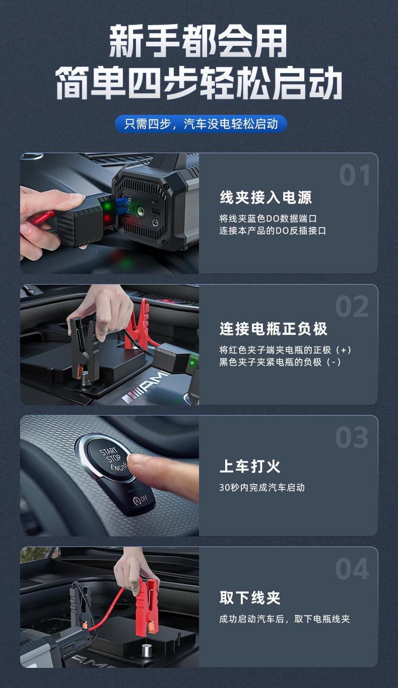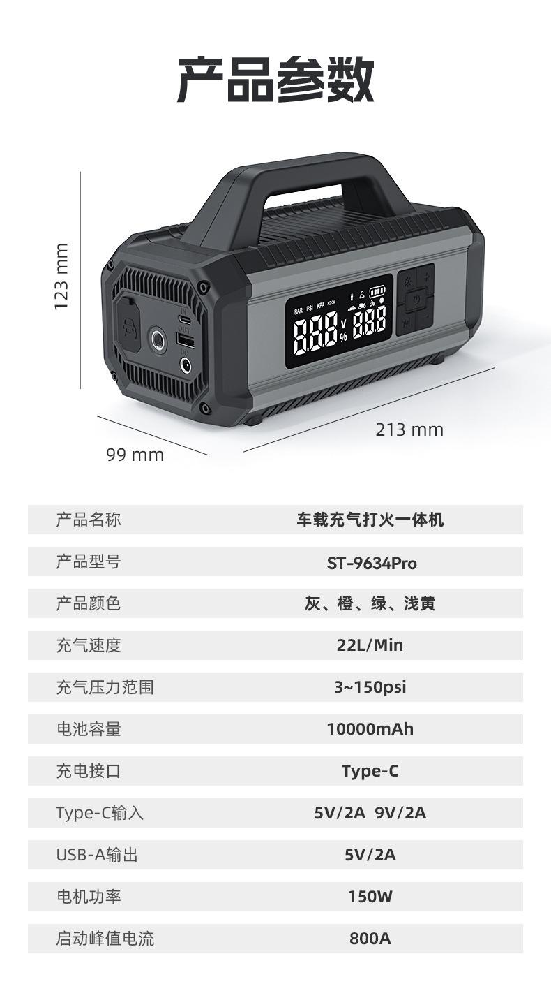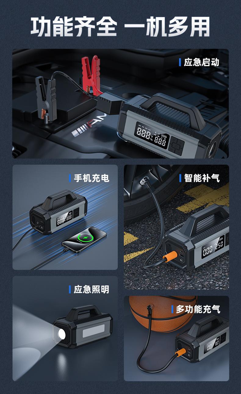 Bomba de Ar Portátil para Carro Tudo-em-Um Auxiliar de Partida de Bateria Ferramenta de Ignição Fonte de Alimentação de Partida de Emergência para Carro